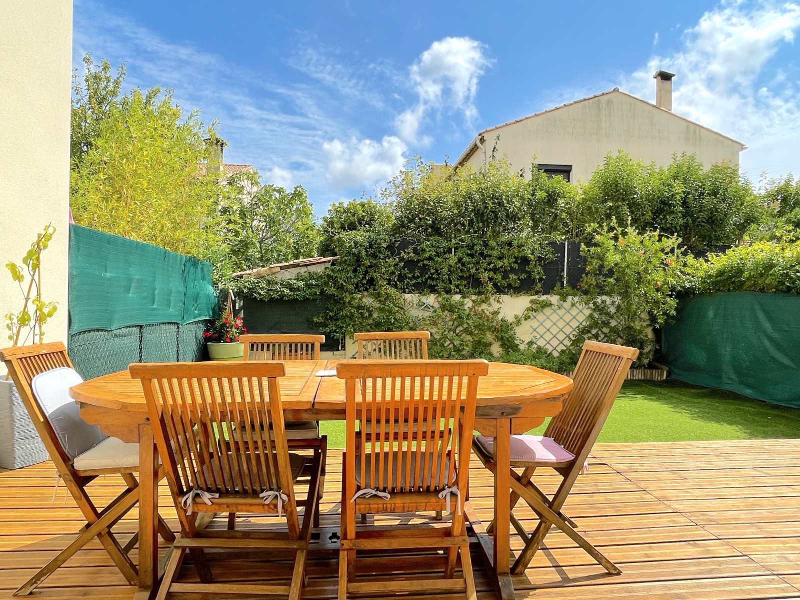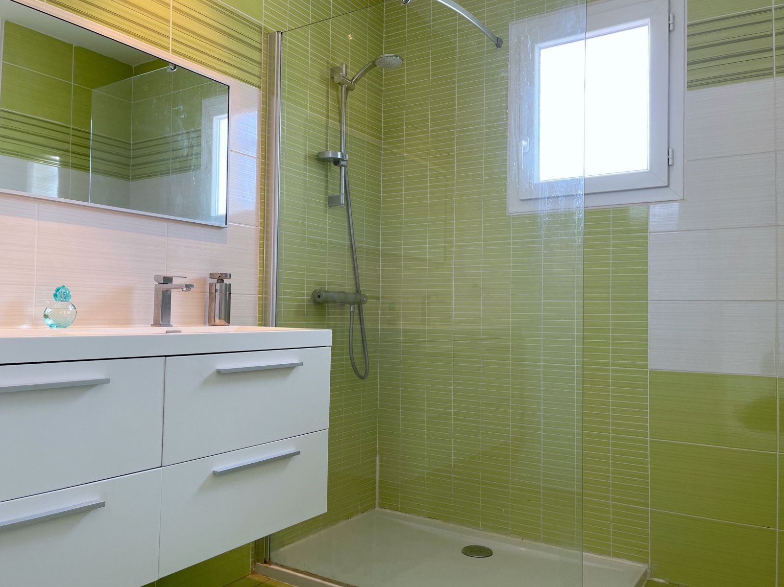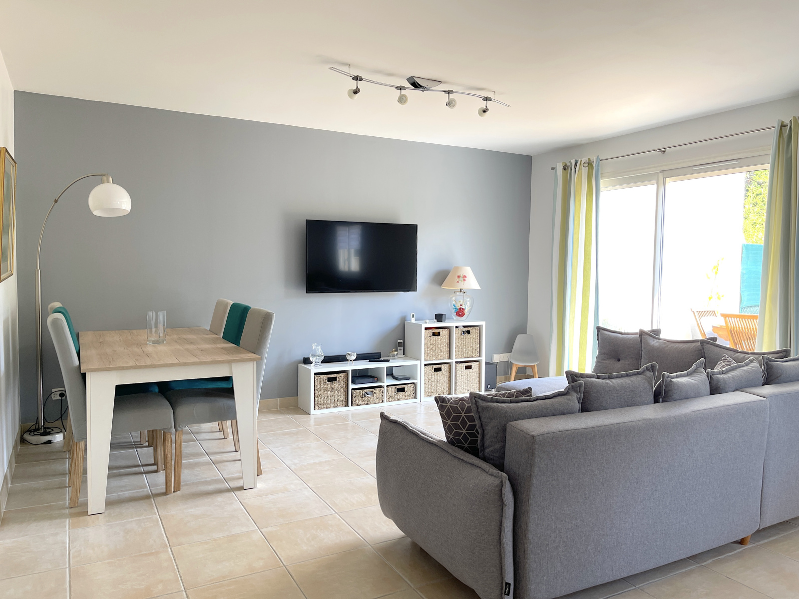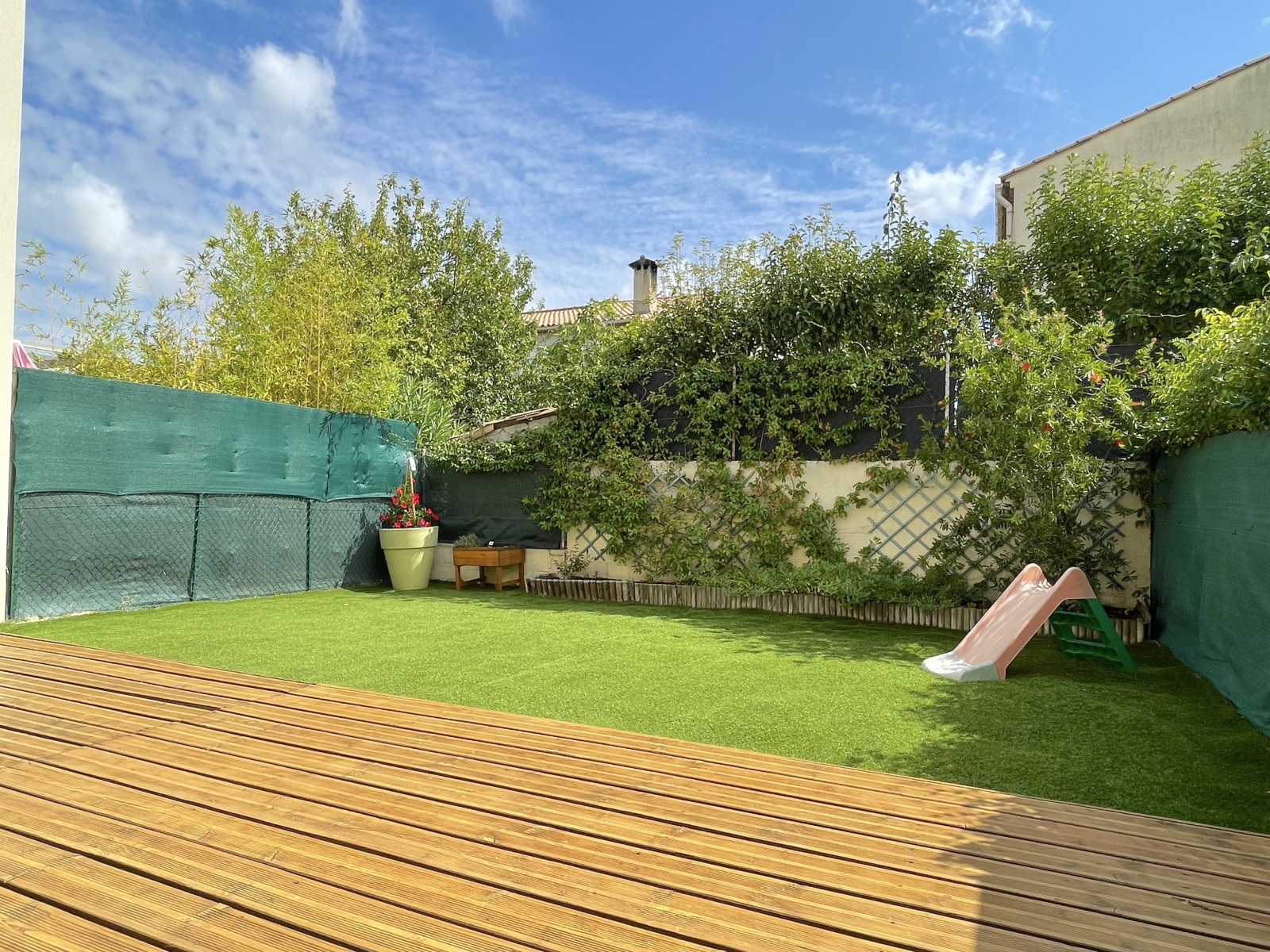 Dans un quartier résidentiel calme, cette villa de 2013 présente des prestations de qualité & des finitions soignées. Exposé Sud-Est, le séjour de 34 m2 dispose d'une cuisine américaine entièrement équipée. Il s'ouvre par une baie vitrée sur terrasse dinatoire de 23,32 m2 & jardin, sans vis-à-vis. Au rez de chaussée, on retrouve également un garage avec mezzanine de stockage. À l'étage, trois belles chambres avec placards, grande salle d'eau & WC séparés. Climatisation réversible, portail automatique.