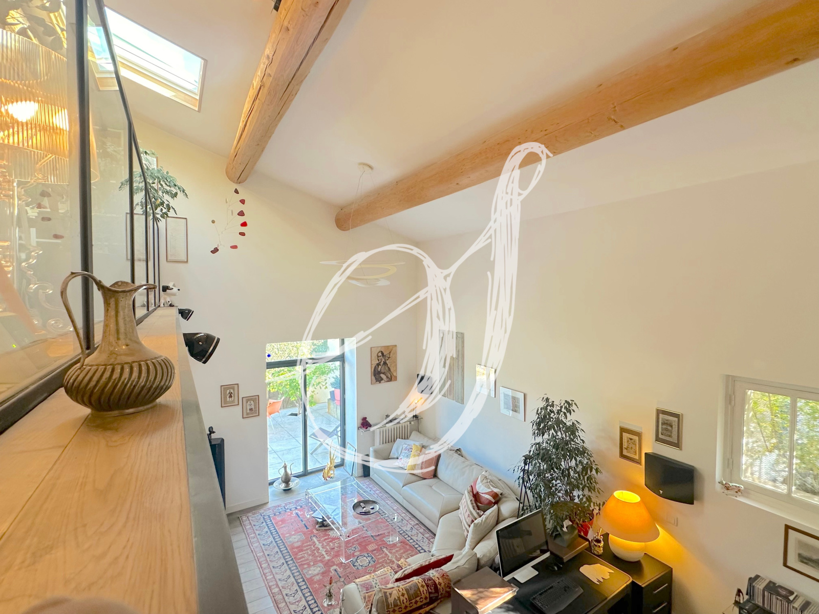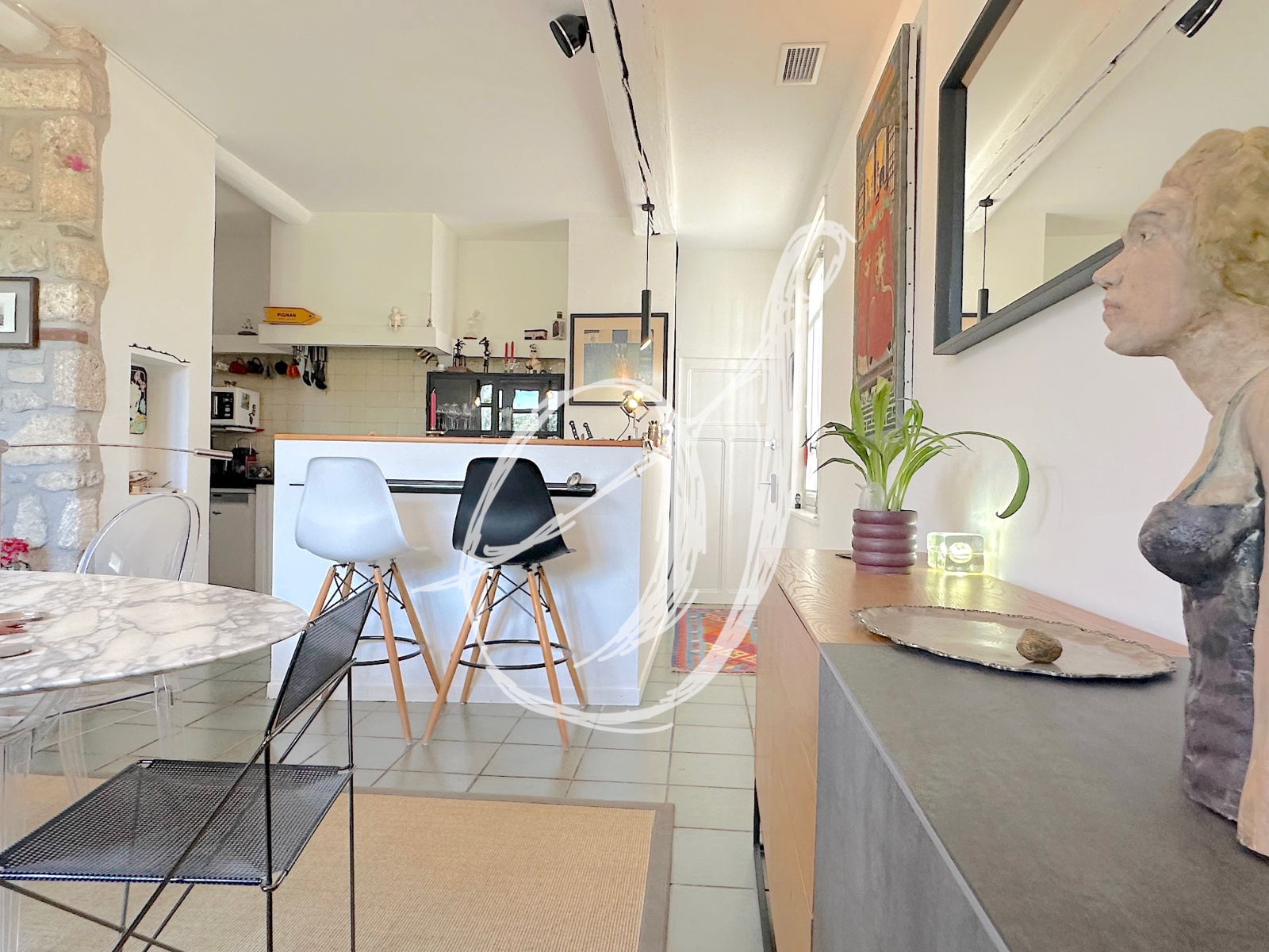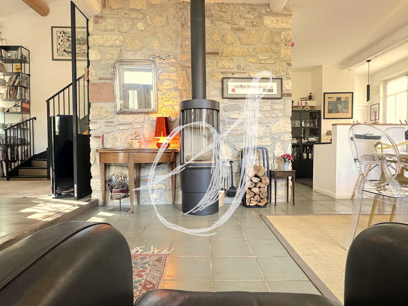 Au coeur du village, cette Maison Ancienne parfaitement rénovée dans un esprit cocooning offre un espace de vie ouvert de plus de 65 m2. Délimité par une verrière amovible, le salon dispose d'une belle hauteur sous plafond. Dans la continuité, l'espace dinatoire communique avec la cuisine ouverte. Une pièce qui allie pierres apparentes, parquet de chêne massif, poutres apparentes & poêle à bois, donnant directement sur terrasse & jardin arboré, sans vis-à-vis. À l'étage, on retrouve deux belles chambres, une salle d'eau avec WC & une pièce bureau en mezzanine en surplomb du salon d'une surface de 13,18 m2 (22,24 m2 au sol). Elle permet aisément d'acceuillir une troisème chambre. Au rez-de-chaussée, on retrouve également une buanderie, des WC, & un garage de près de 70 m2 (2 voitures). Des prestations de qualité pour cette maison de charme offrant un système de chauffage central sur pompe à chaleur air / eau, climlatisation gainée, cumulus thermodynamique, & un adoucisseur d'eau, arrosage automatique, robot tondeuse...