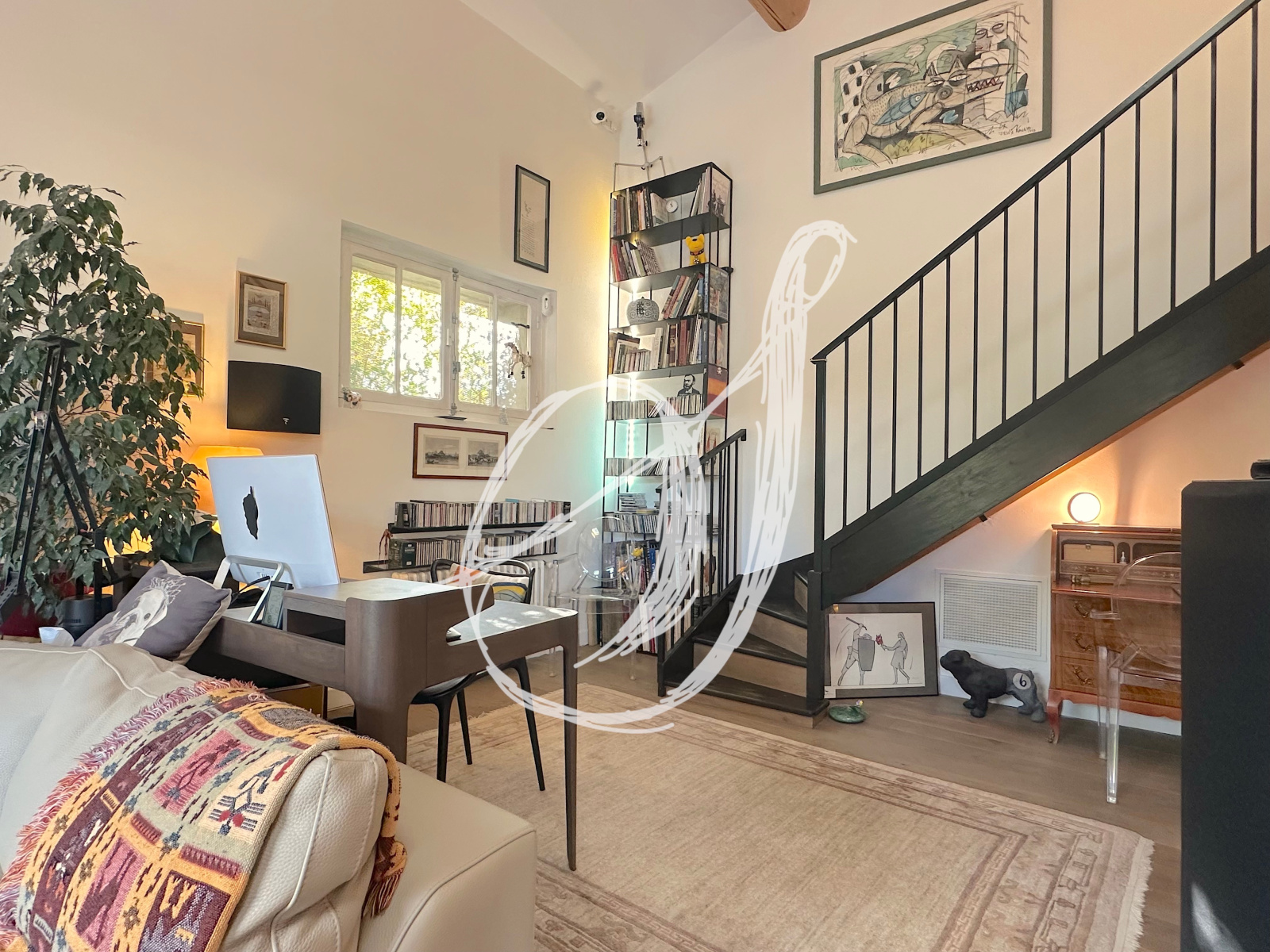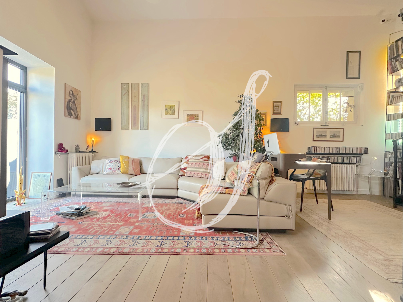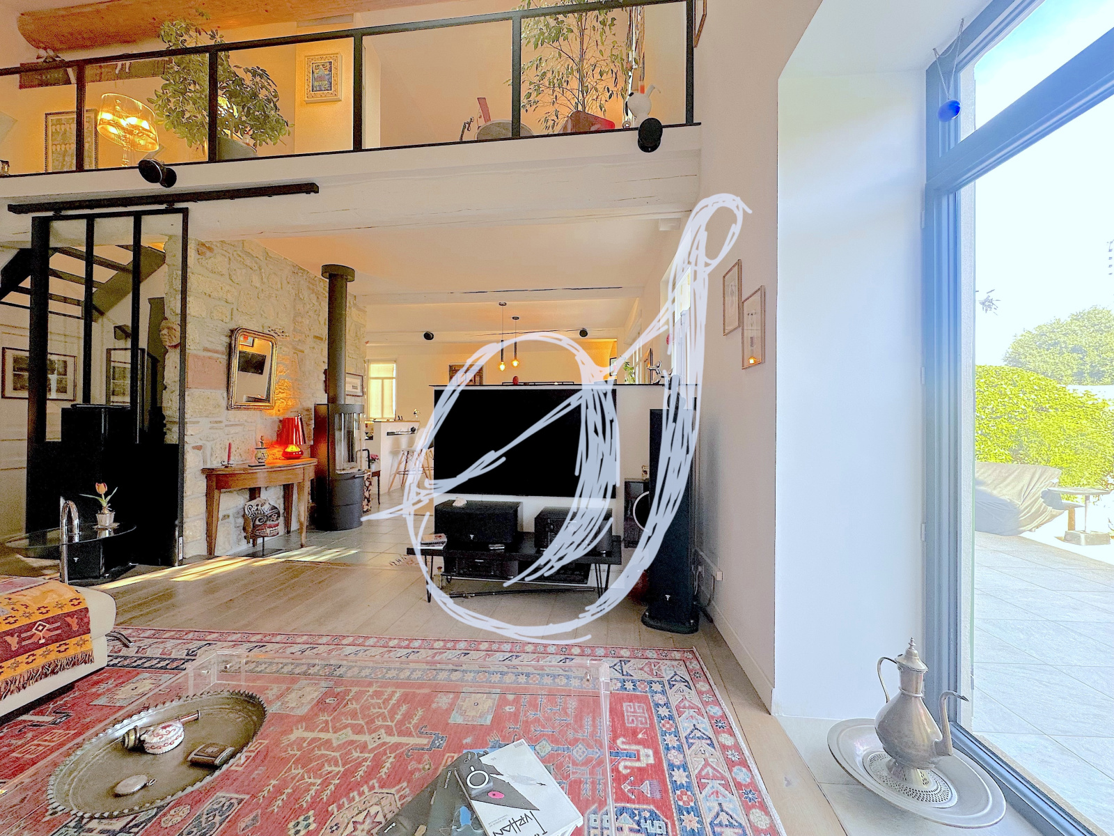 Au coeur du village, cette Maison Ancienne parfaitement rénovée dans un esprit cocooning offre un espace de vie ouvert de plus de 65 m2. Délimité par une verrière amovible, le salon dispose d'une belle hauteur sous plafond. Dans la continuité, l'espace dinatoire communique avec la cuisine ouverte. Une pièce qui allie pierres apparentes, parquet de chêne massif, poutres apparentes & poêle à bois, donnant directement sur terrasse & jardin arboré, sans vis-à-vis. À l'étage, on retrouve deux belles chambres, une salle d'eau avec WC & une pièce bureau en mezzanine en surplomb du salon d'une surface de 13,18 m2 (22,24 m2 au sol). Elle permet aisément d'acceuillir une troisème chambre. Au rez-de-chaussée, on retrouve également une buanderie, des WC, & un garage de près de 70 m2 (2 voitures). Des prestations de qualité pour cette maison de charme offrant un système de chauffage central sur pompe à chaleur air / eau, climlatisation gainée, cumulus thermodynamique, & un adoucisseur d'eau, arrosage automatique, robot tondeuse...