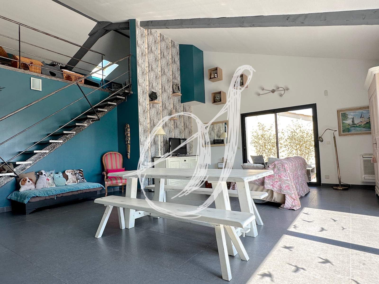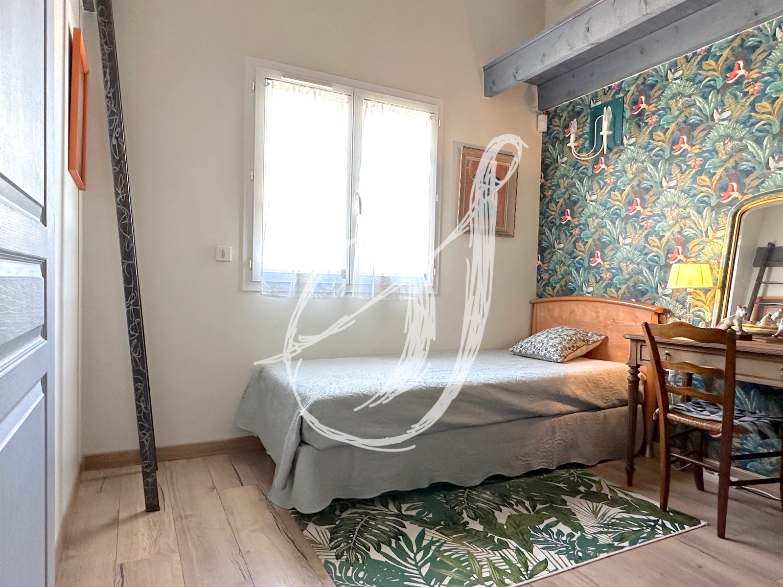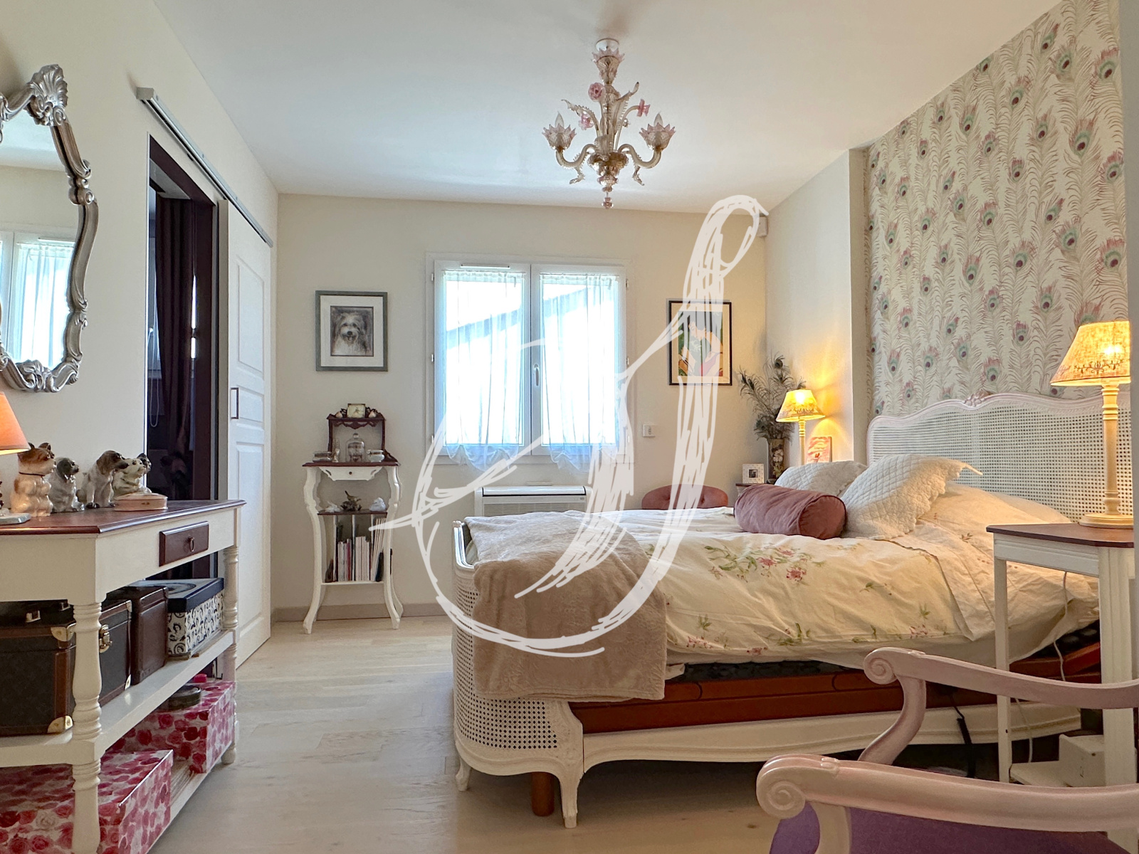 Dans un quartier résidentiel calme, cette villa de 2008 offre un espace de vie de près de 60 m2 ouvert par une baie à galandage sur terrasse & jardin sans vis-à-vis. Pleine de charme, cette pièce bénéficie d'une belle hauteur sous plafond, mise en valeur par la mezzanine, idéale pour un espace bureau. Au rez-de-chaussée, on retrouve deux chambres se partageant une salle-de-bains, une suite avec salle d'eau privative & dressing. À l'étage, la mezzanine dessert une quatrième chambre. Entièrement paysagé & exposé plein Sud, le jardin offre différents espaces : une grande terrasse dinatoire dans le prolongement du séjour, une terrasse couverte avec barbecue. Garage communicant avec la maison, climatisation réversible dans chaque pièce, aspiration centralisée, panneaux photovoltaïques générant un revenu annuel d'environ 2 400 € jusqu'en 2029.