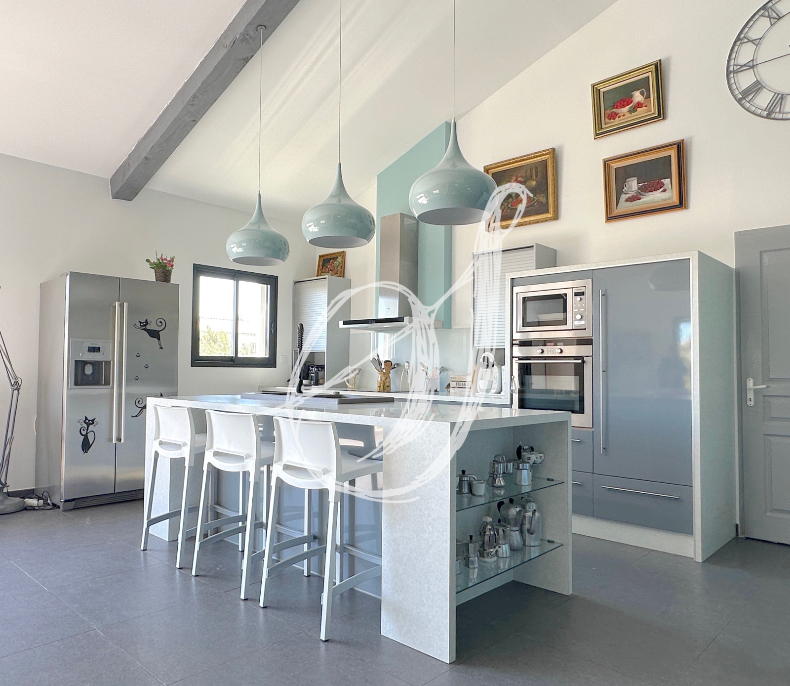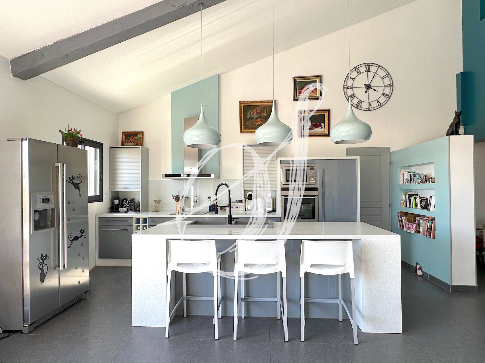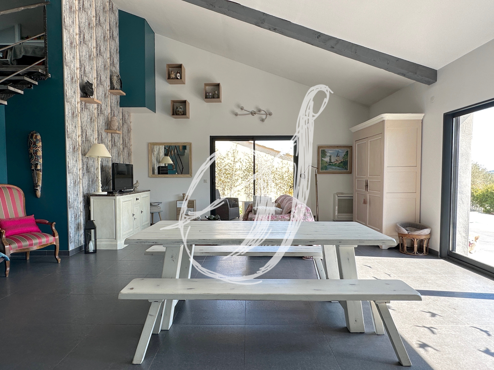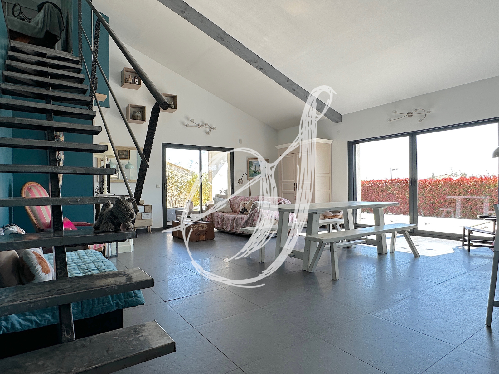 Dans un quartier résidentiel calme, cette villa de 2008 offre un espace de vie de près de 60 m2 ouvert par une baie à galandage sur terrasse & jardin sans vis-à-vis. Pleine de charme, cette pièce bénéficie d'une belle hauteur sous plafond, mise en valeur par la mezzanine, idéale pour un espace bureau. Au rez-de-chaussée, on retrouve deux chambres se partageant une salle-de-bains, une suite avec salle d'eau privative & dressing. À l'étage, la mezzanine dessert une quatrième chambre. Entièrement paysagé & exposé plein Sud, le jardin offre différents espaces : une grande terrasse dinatoire dans le prolongement du séjour, une terrasse couverte avec barbecue. Garage communicant avec la maison, climatisation réversible dans chaque pièce, aspiration centralisée, panneaux photovoltaïques générant un revenu annuel d'environ 2 400 € jusqu'en 2029.