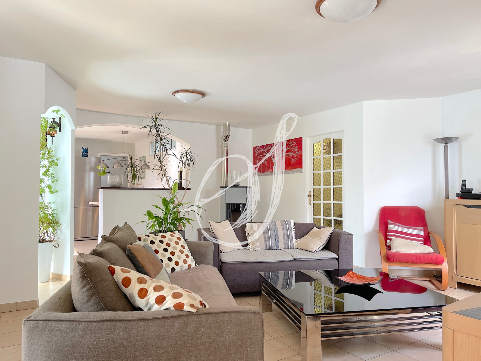 Sur les hauteurs, dans un quartier résidentiel calme, cette villa est en parfait état d'entretien. Son jardin paysagé offre différents espaces d'agrément autour de la piscine. Le séjour de près de 60 m2 s'ouvre par de multiples fenêtres & baies sur terrasses & jardin. La cuisine semi-ouverte dispose d'un coin repas. Le bien offre quatre chambres dont une suite avec salle d'eau privative & une autre salle d'eau. Garage & emplacement de stationnement privatif.