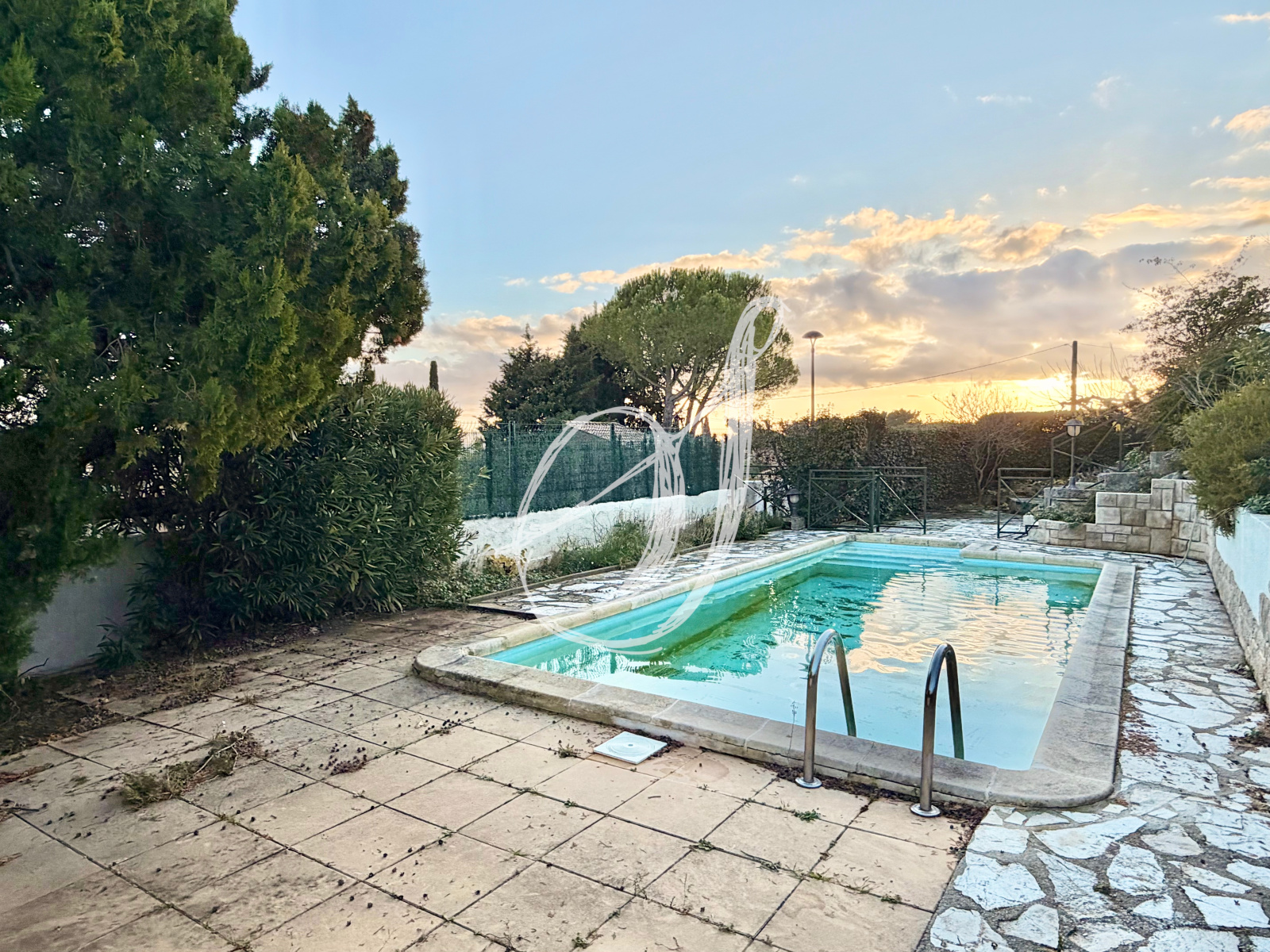 Sur les hauteurs d'un village situé à 6 kms de Montpellier, dans un quartier résidentiel calme, cette villa bénéficie d'une parcelle arborée exposée plein Sud offrant une vue dominante & dégagée. Le séjour & la cuisine s'ouvrent par baie vitrée & porte fenêtre sur une terrasse, en surplomb de l'espace piscine. L'ouverture de deux cloisons permettrait d'obtenir un espace de vie d'environ 45 m2. Permettant une vie de plain-pied, elle dispose de deux chambres & d'une salle d'eau au rez-de-chaussée. À l'étage, on retrouve la troisième chambre & un bureau pouvant faire office de chambre d'appoint. Le bien est équipé de climatisation réversible par splits, tableau électrique refait. Une construction traditionnelle de qualité sur vide sanitaire, nécessitant des travaux de rafraichissement.