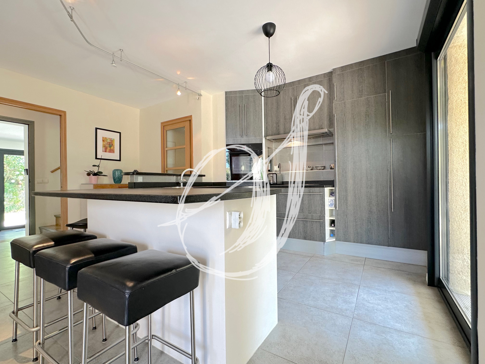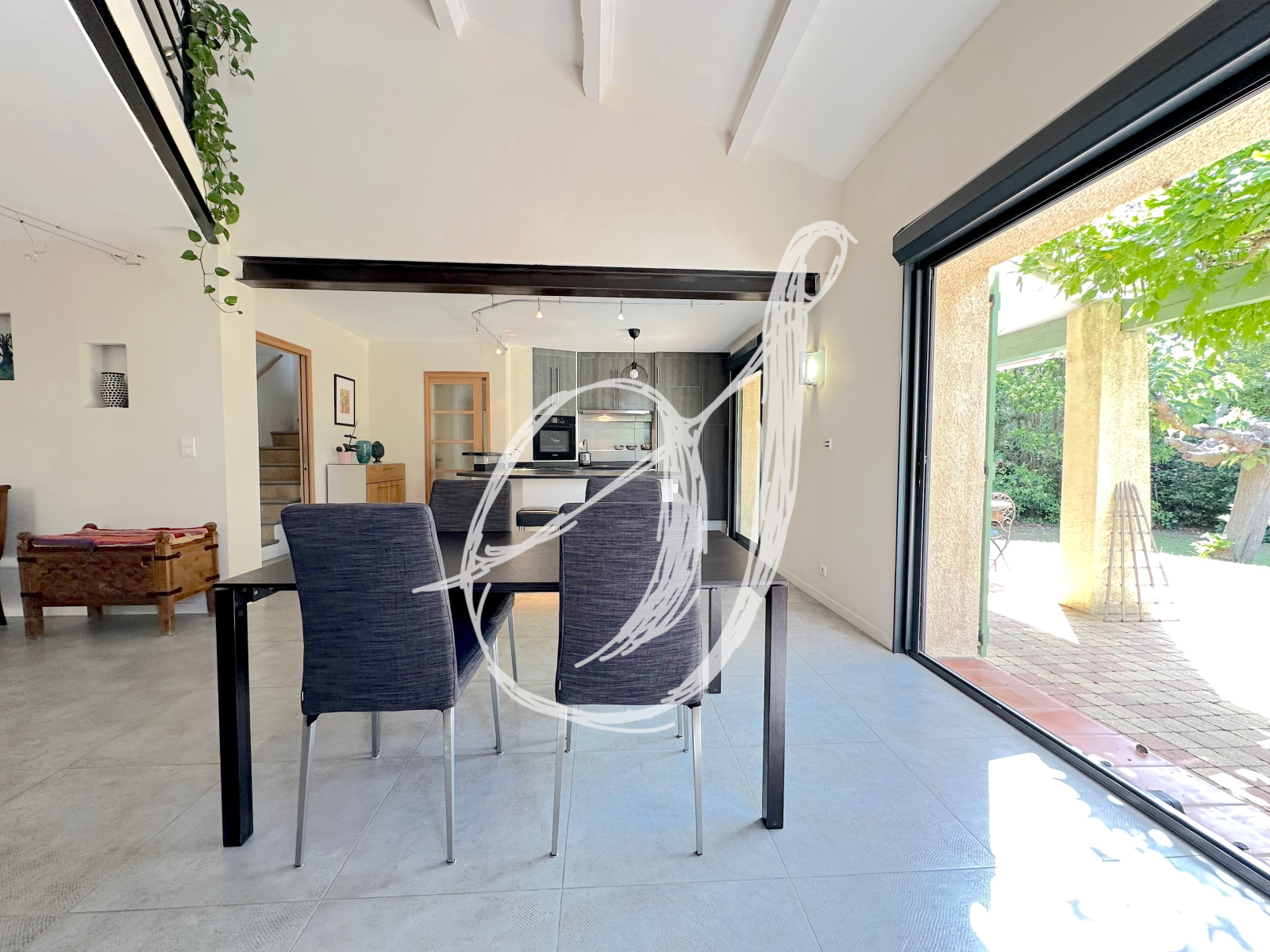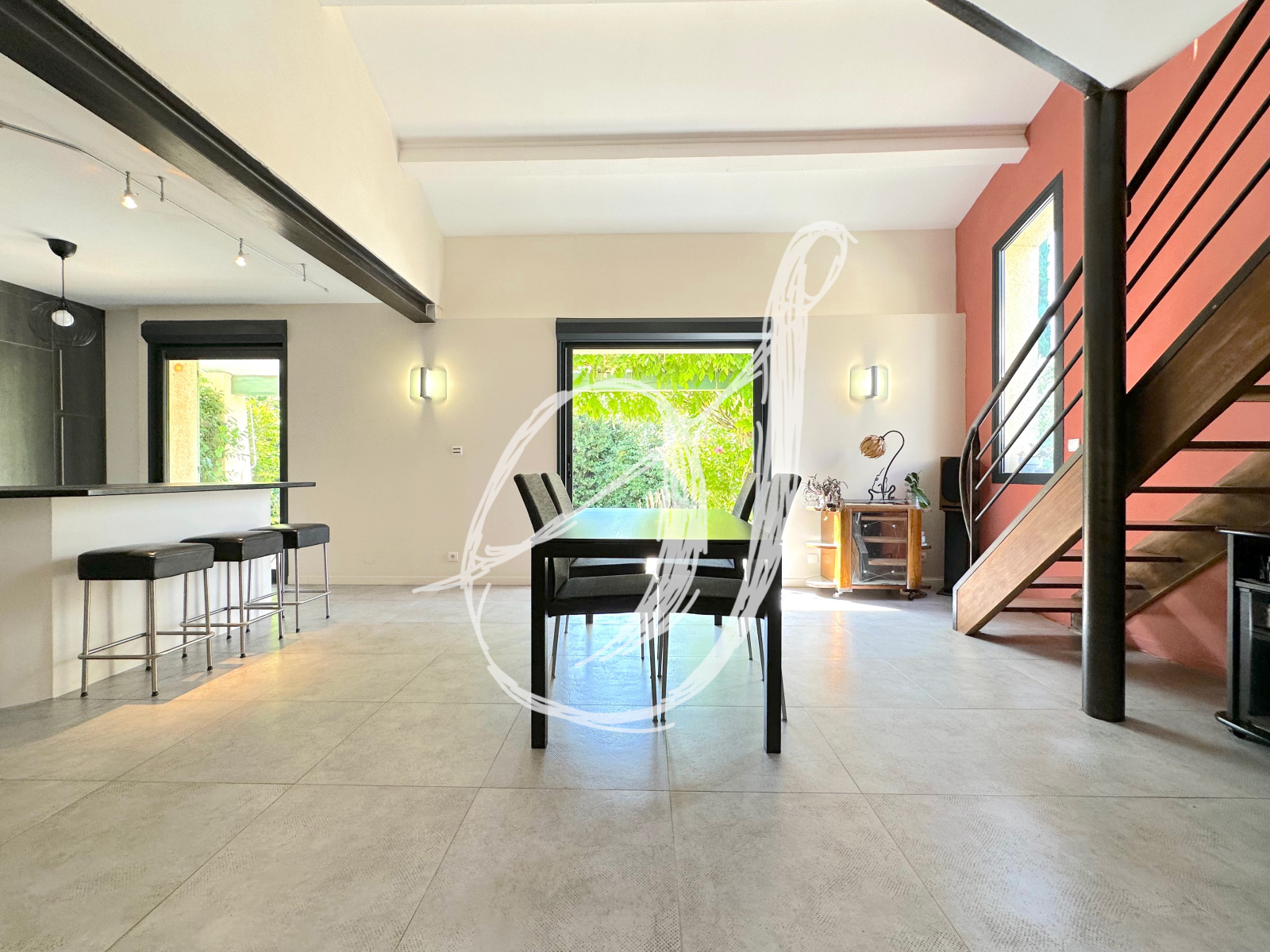 À proximité de l'ensemble des commodités à pieds, cette villa bénéficie d'une parcelle arborée de 1 400 m2 exposée plein Sud. Divers espaces ont été aménagés pour profter de la saison estivale : autour de la piscine, sous le pool-house avec barbecue ou devant le séjour sur la terrasse ombragée... L'espace de vie traversant bénéficie d'une belle hauteur sous plafonds, mise en valeur par la structure métallique de la mezzanine en surplomb & s'ouvre par deux baies vitrées à galandage sur la terrasse. Au rez-de-chaussée, on retrouve également la chambre parentale avec sa salle d'eau privative, une buanderie & une deuxième chambre sous forme de suite avec sa salle d'eau privative. Elle peut être indépedante : arrivées & évaucation pour la création d'un studio, bureau pour une profession libérale notamment. À l'étage, 3 chambres se partagent une salle de bains. Un garage double complète cette villa traditionnelle de 1985 entièrement rénovée.