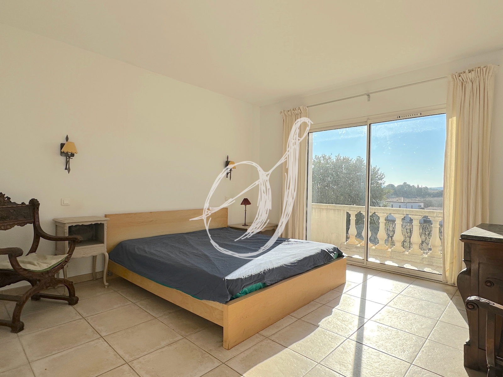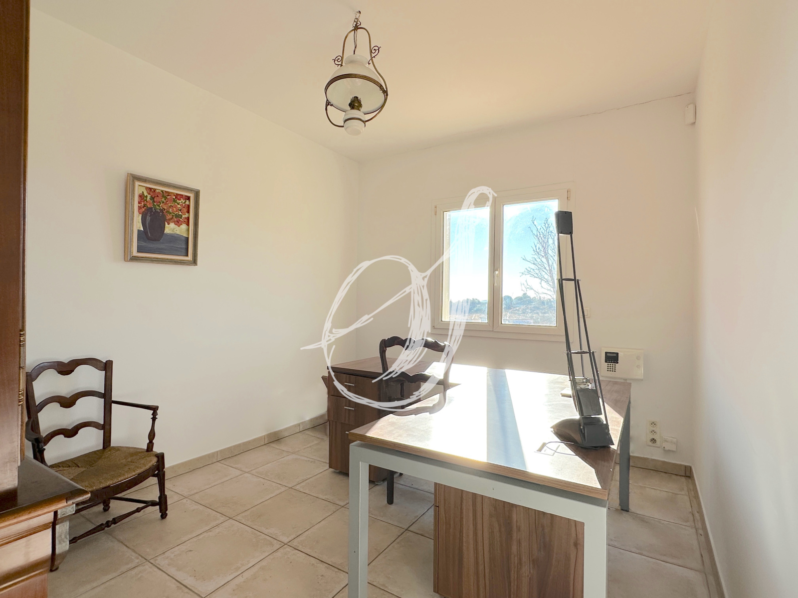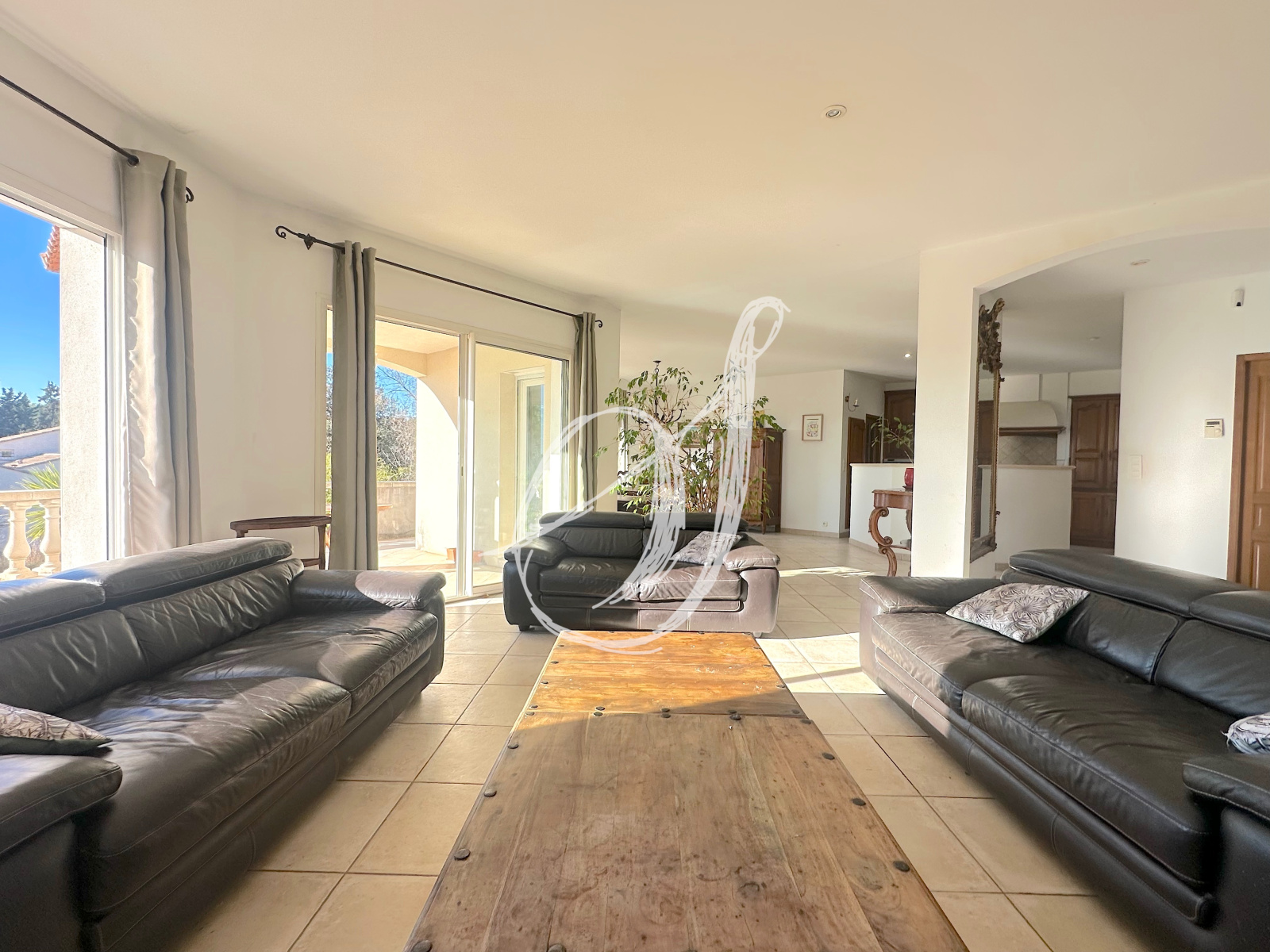 Dans un quartier résidentiel calme, sur une parcelle de 2 183 m2, cette villa de plain-pied d'une surface de près de 220 m2 avec garage offre de nombreuses possibilités en fonction des projets. Son espace de vie de 70 m2 s'ouvre par de larges baies vitrées sur une terrasse exposée plein Sud offrant une vue dominante & dégagée, en léger surplomb du jardin. Elle dispose d'une partie de 76 m2, communicante avec la partie principale, pouvant sevir de logement indépendant ou pour une activité libérale. Le bien comprend également un studio de 32 m2 & un garage de 34 m2. Un environnement privilégié à proximité de toutes commodités à pieds pour ce bien équipé d'un forage & nécessitant des travaux de rafraichissement.