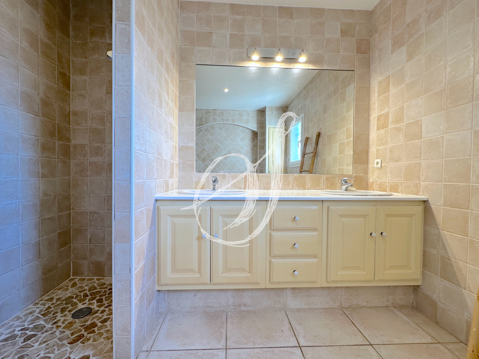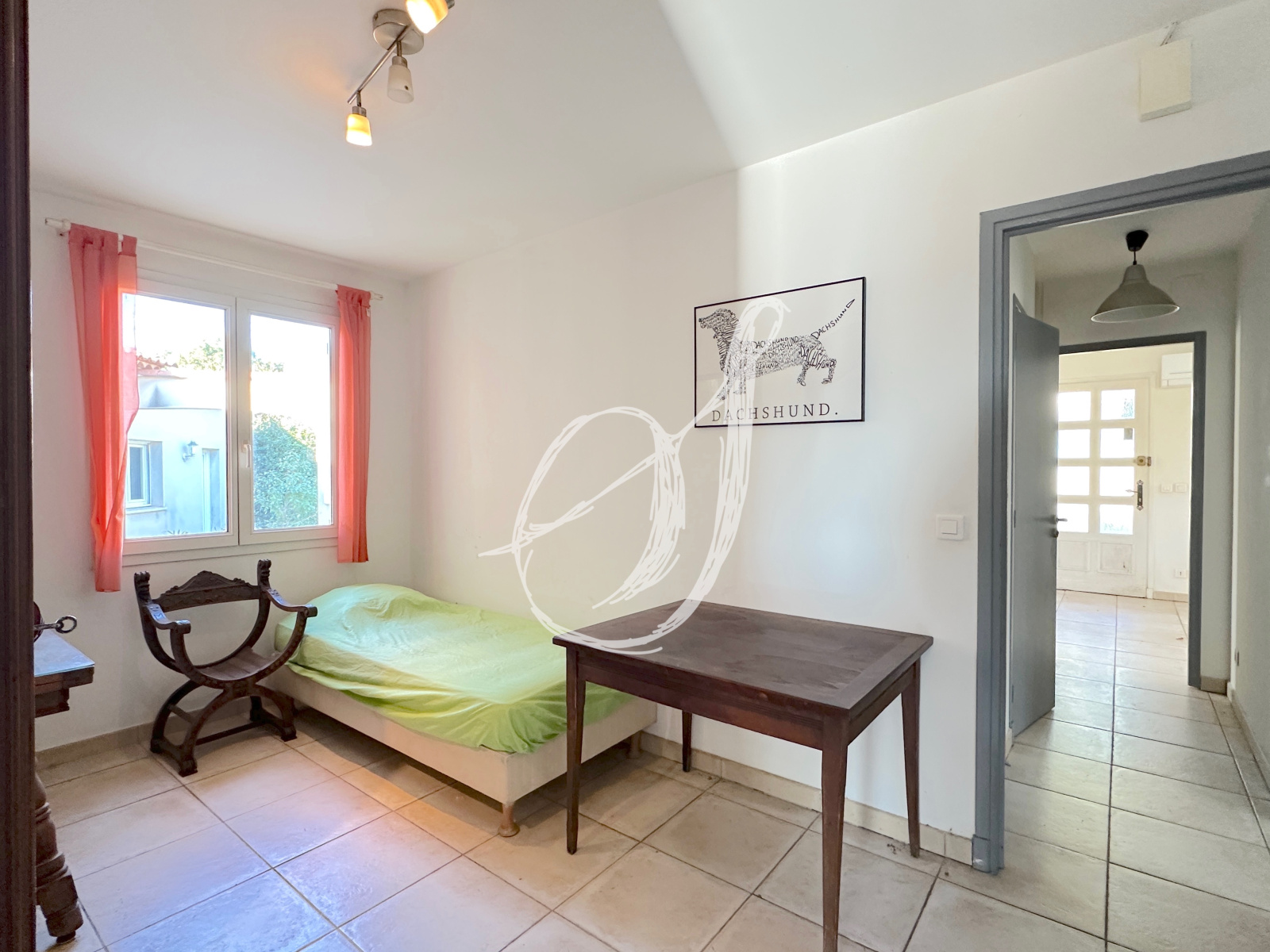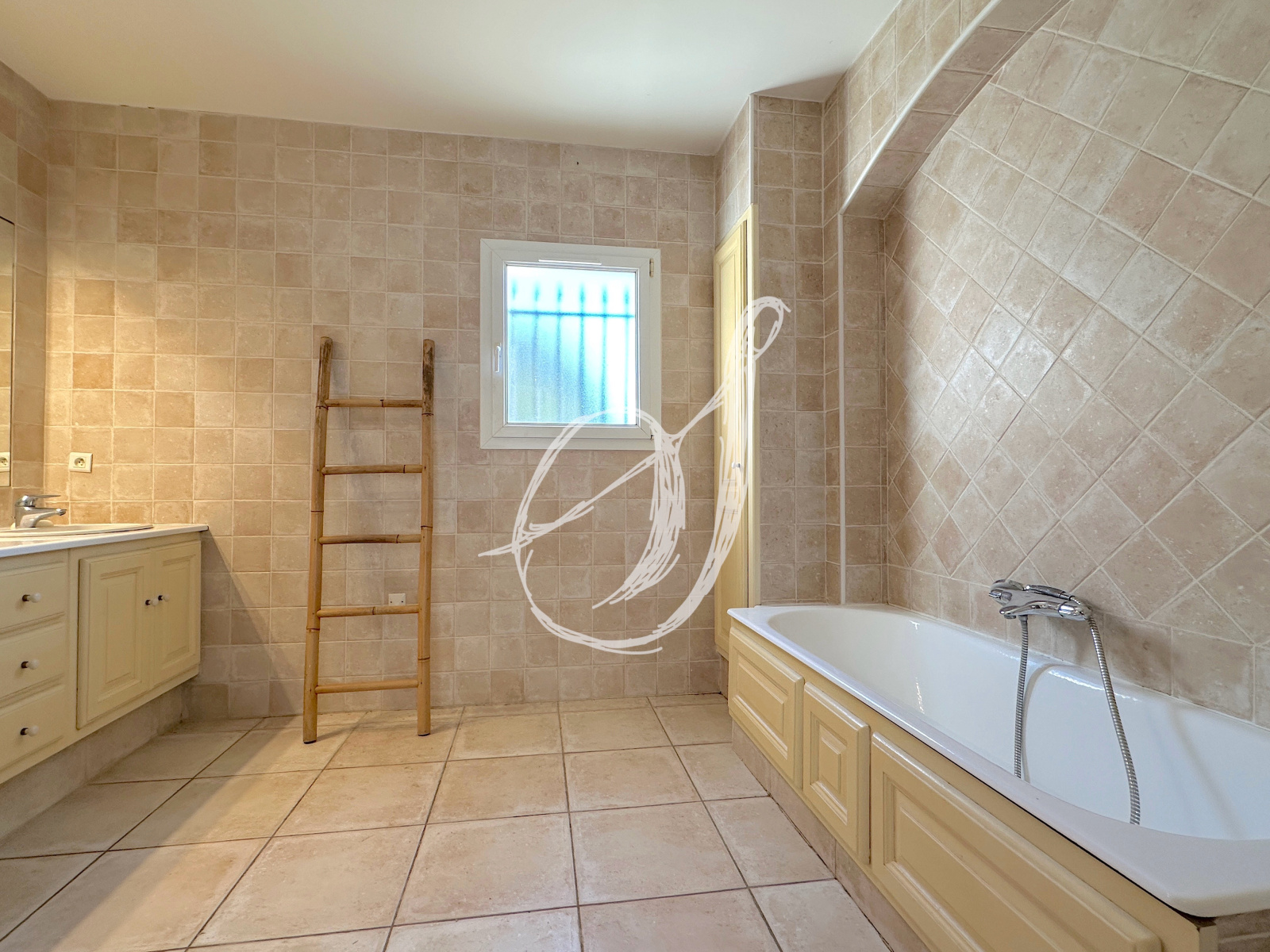 Dans un quartier résidentiel calme, sur une parcelle de 2 183 m2, cette villa de plain-pied d'une surface de près de 220 m2 avec garage offre de nombreuses possibilités en fonction des projets. Son espace de vie de 70 m2 s'ouvre par de larges baies vitrées sur une terrasse exposée plein Sud offrant une vue dominante & dégagée, en léger surplomb du jardin. Elle dispose d'une partie de 76 m2, communicante avec la partie principale, pouvant sevir de logement indépendant ou pour une activité libérale. Le bien comprend également un studio de 32 m2 & un garage de 34 m2. Un environnement privilégié à proximité de toutes commodités à pieds pour ce bien équipé d'un forage & nécessitant des travaux de rafraichissement.