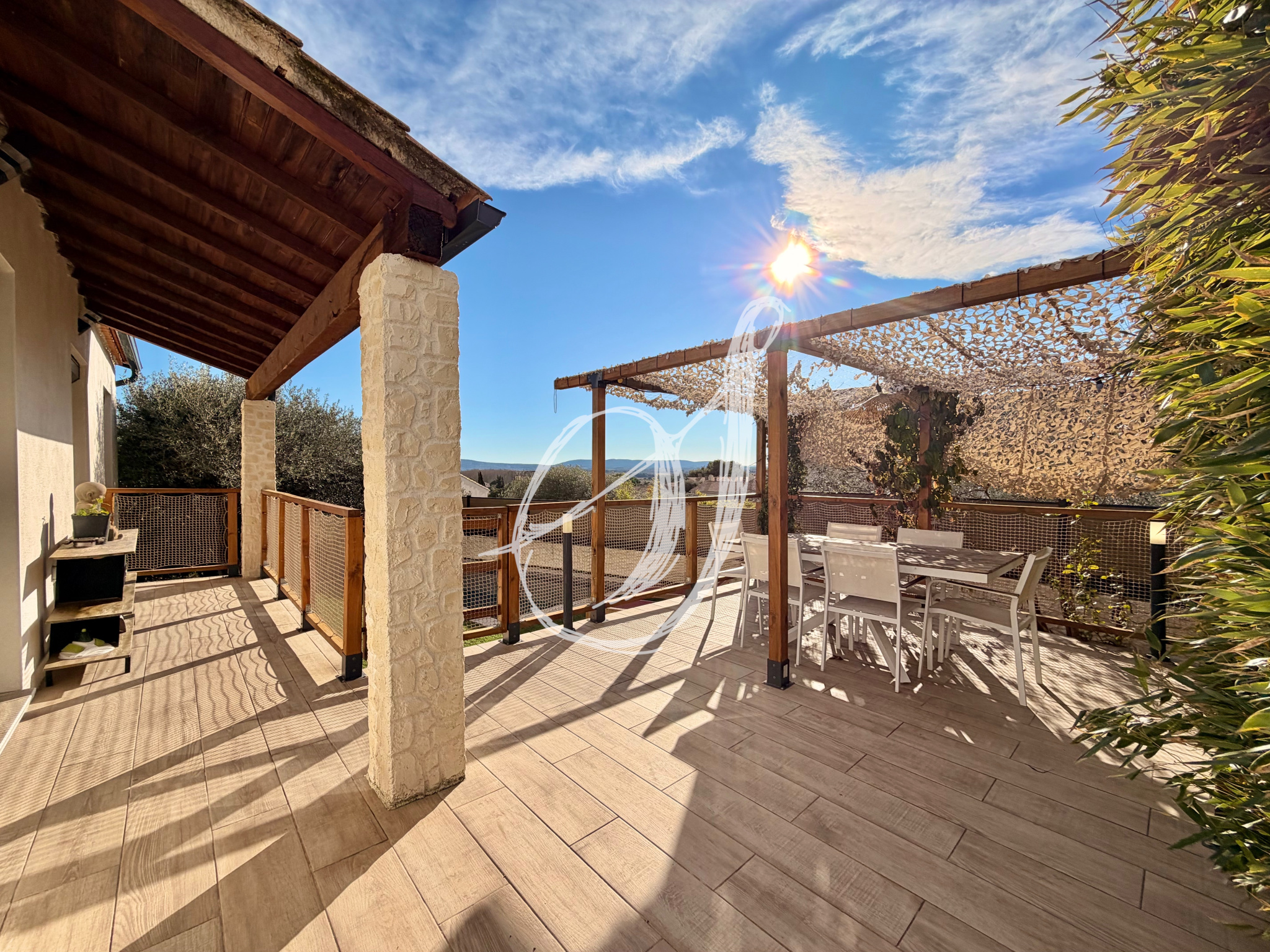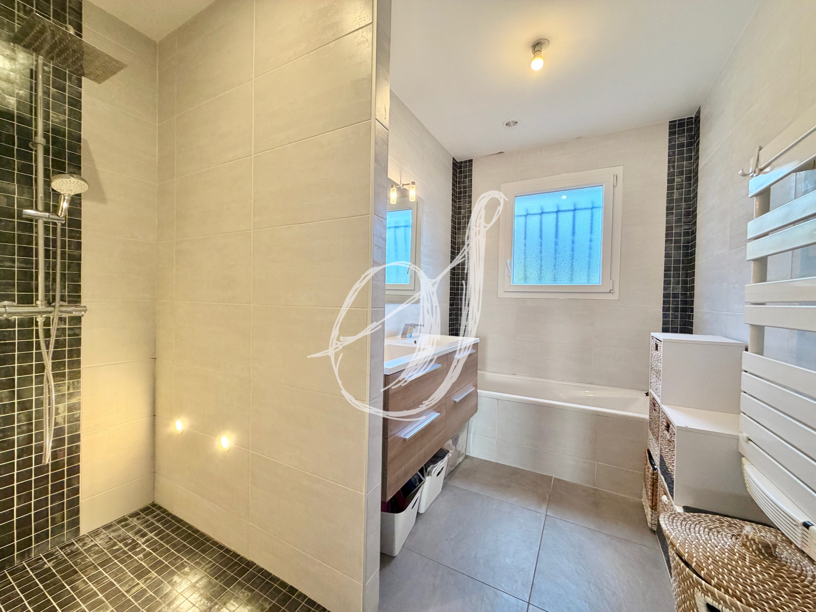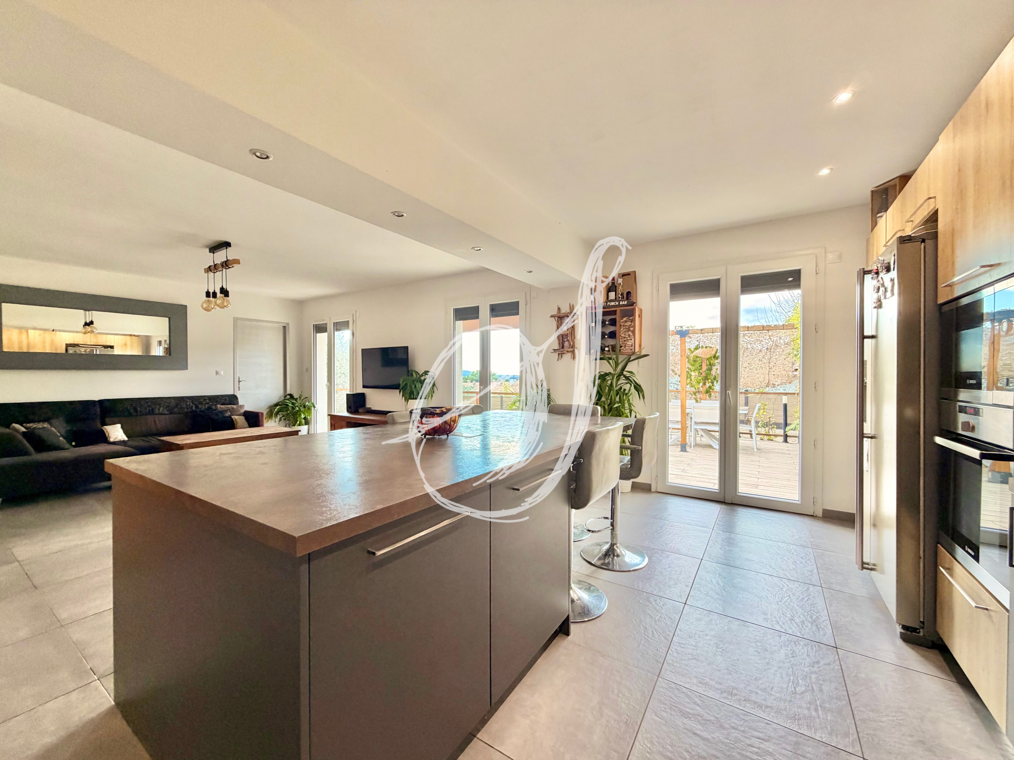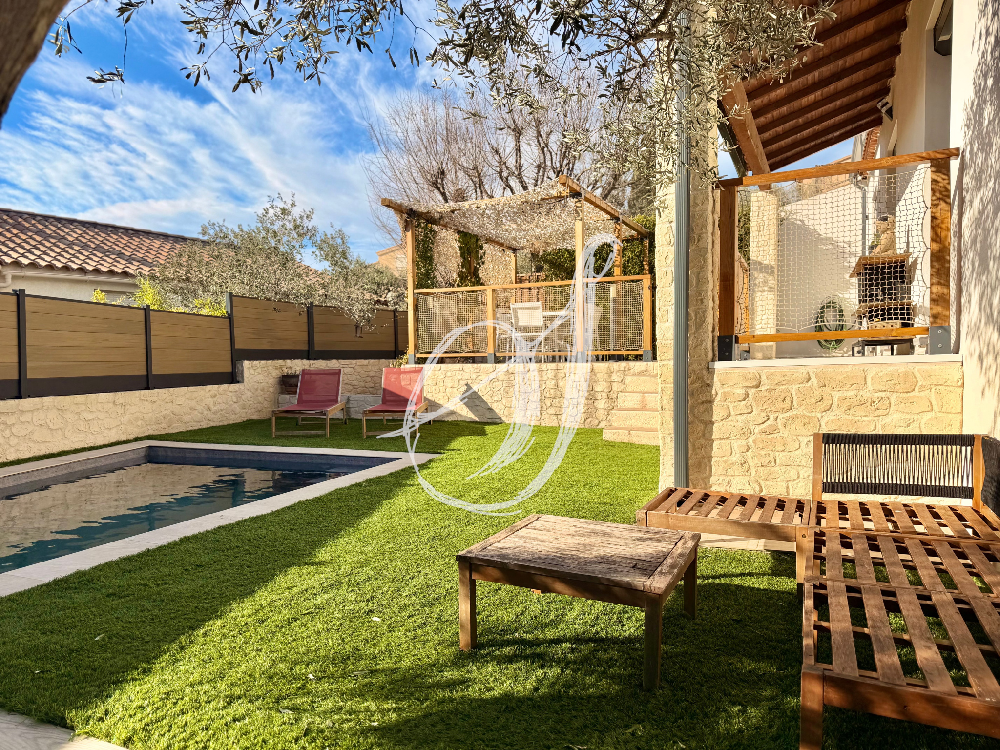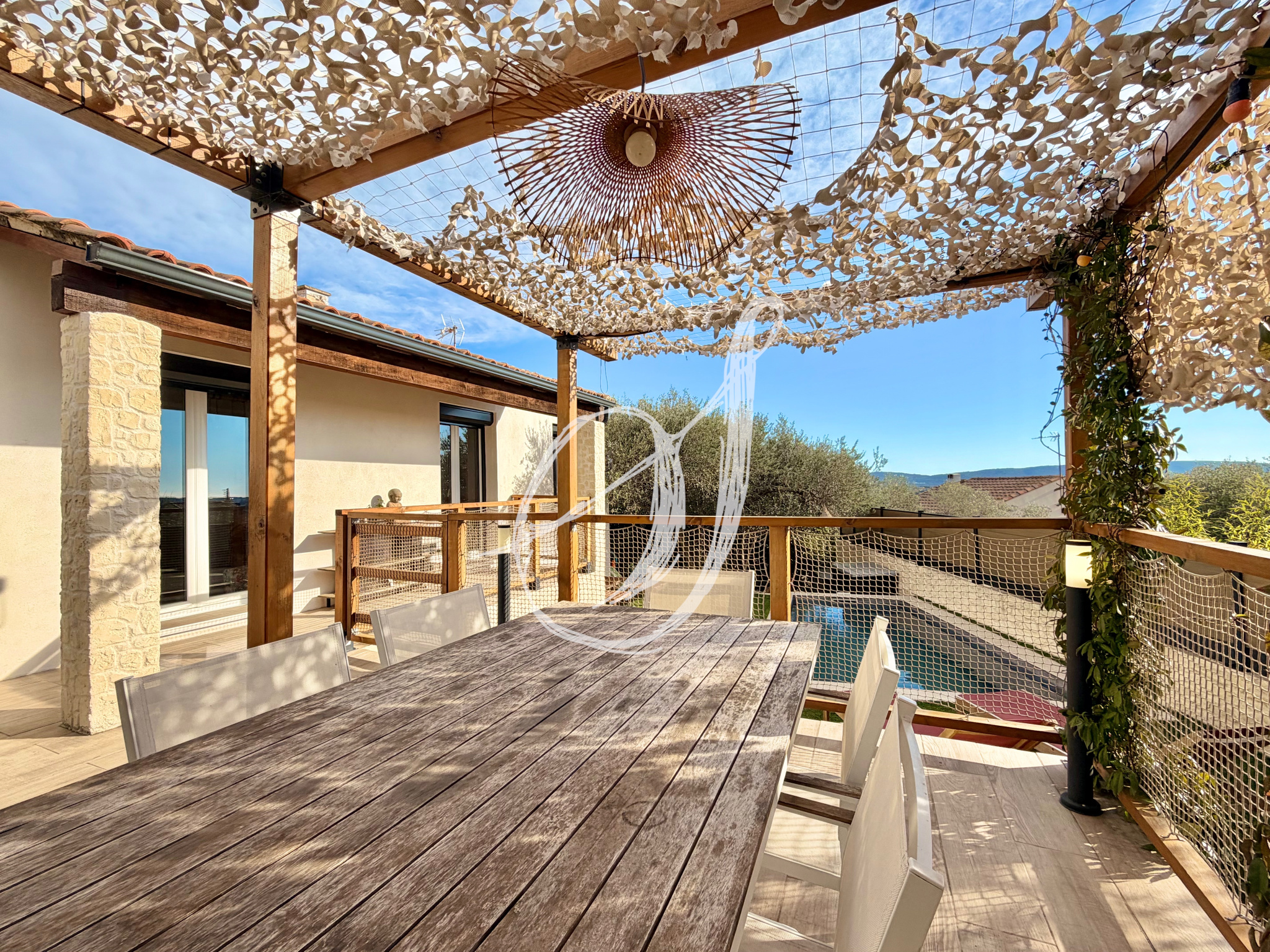 Sur les hauteurs du village, dans un quartier résidentiel calme, cette villa traditionnelle de plain-pied dispose d'une parcelle de 413 m2. Son espace de vie de plus de 40 m2 bénéficie d'une vaste cuisine équipée & s'ouvre par 3 portes fenêtres sur terrasse & jardin exposés Sud-Ouest, offrant une vue dominante & dégagée. Un espace d'agrément confortable a été aménagé autour de la mini-piscine. Le bien offre deux chambres, une salle de bains avec douche & baignoire & un garage de 16,50 m2 aménageable en troisième chambre. Un bien entièrement rénové entre 2017 & 2023, parfaitement entretenu. La parcelle permet le stationnement de plusieurs véhicules.