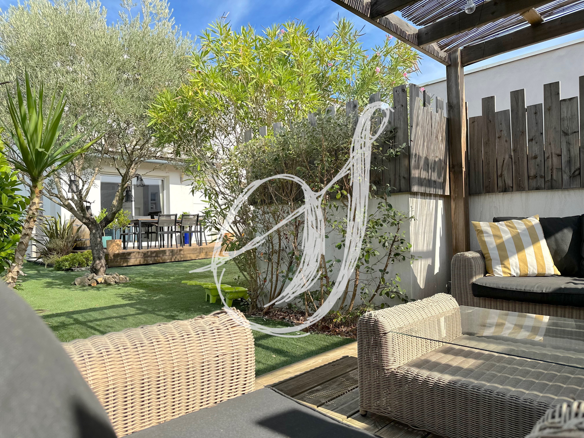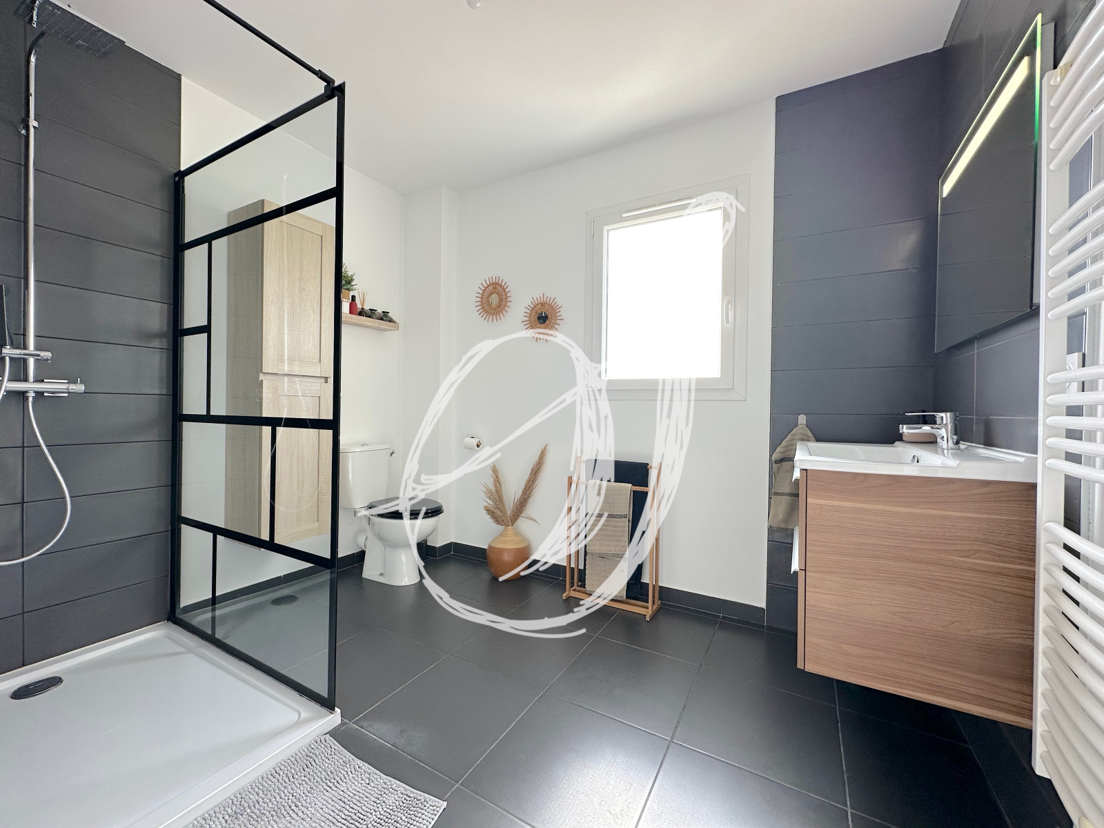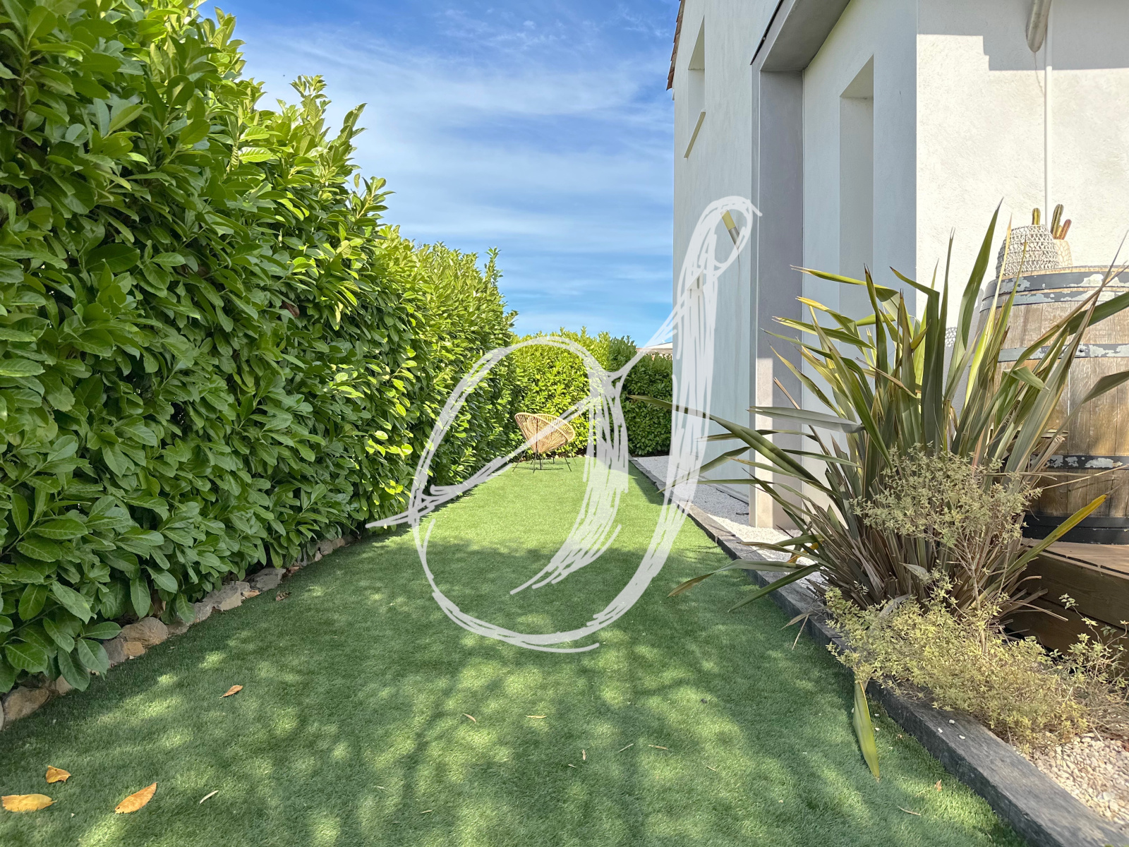 Dans un quartier résidentiel en impasse, cette villa contemporaine de 2019 présente des prestations haut de gamme. Baigné de lumière, son Séjour / Cuisine de près de 40 m2 s'ouvre par une large baie sur terrasse & jardin exposés plein Sud. La cuisine, entièrement équipée, est en léger retrait du séjour. Le jardin est entièrement paysagé & bénéficie de deux terrasses : une première dans le prolongement du séjour avec store banne électrique, la deuxième très intimiste dispose d'une pergola. À l'étage, trois chambres, dont une avec dressing, se partagent une salle d'eau / WC. Une construction traditionnelle en briques alvéolaires sur vide sanitaire, équipée de climatisation réversible gainée sur l'ensemble de la villa, cumulus thermodynamique, panneaux photovoltaïques en auto consommation, isolation périphérique en laine de bois, garage & emplacement de stationnement extérieur privatif.