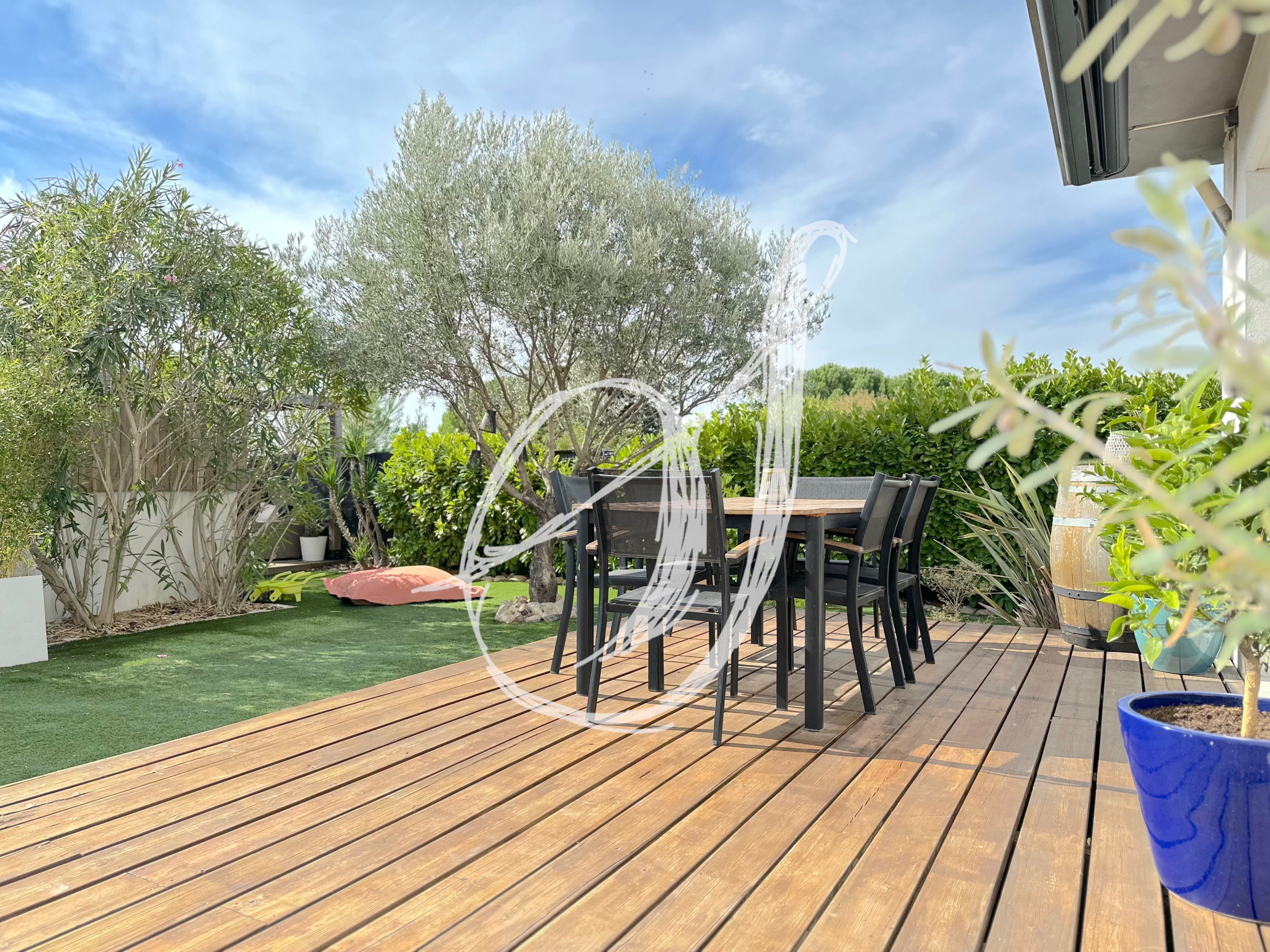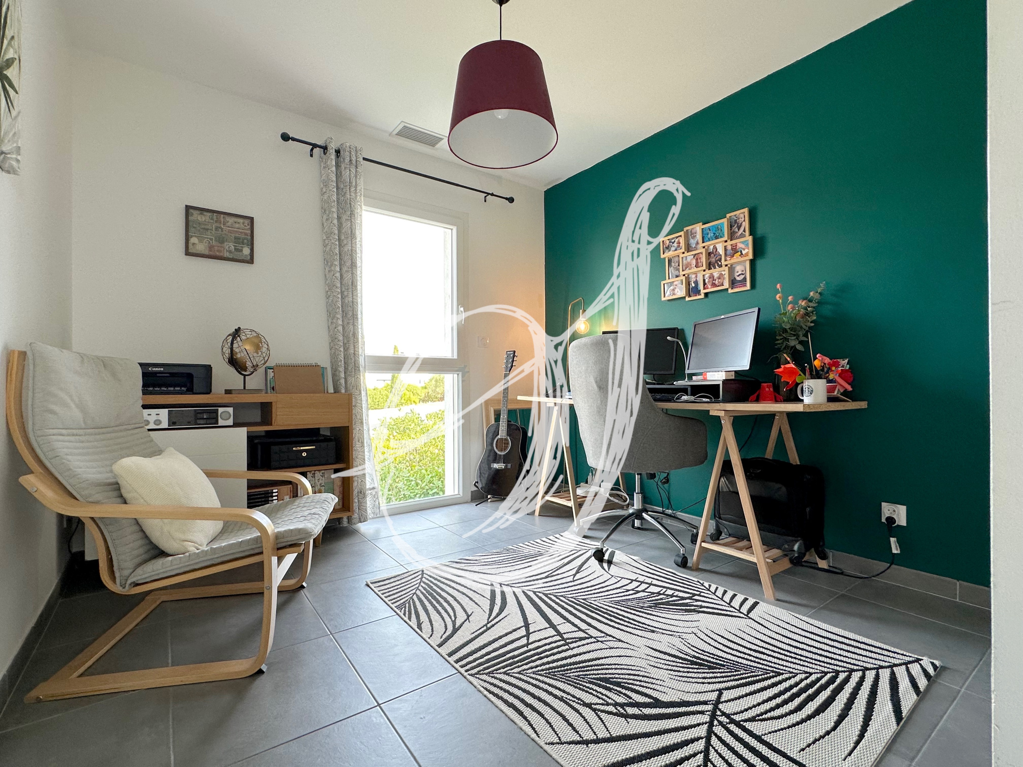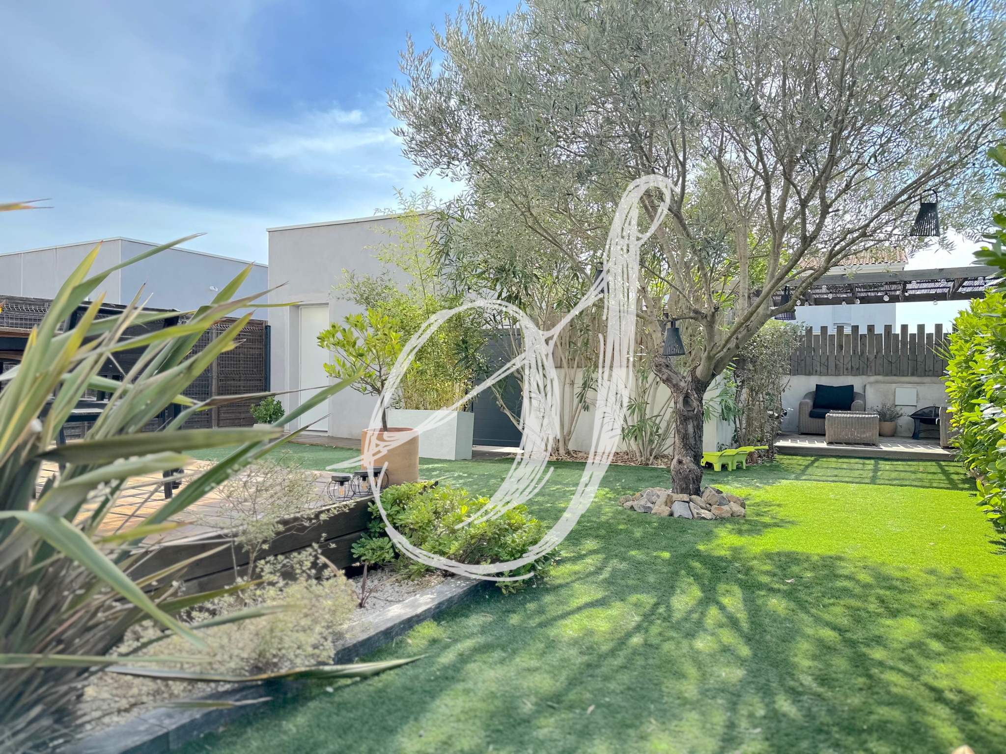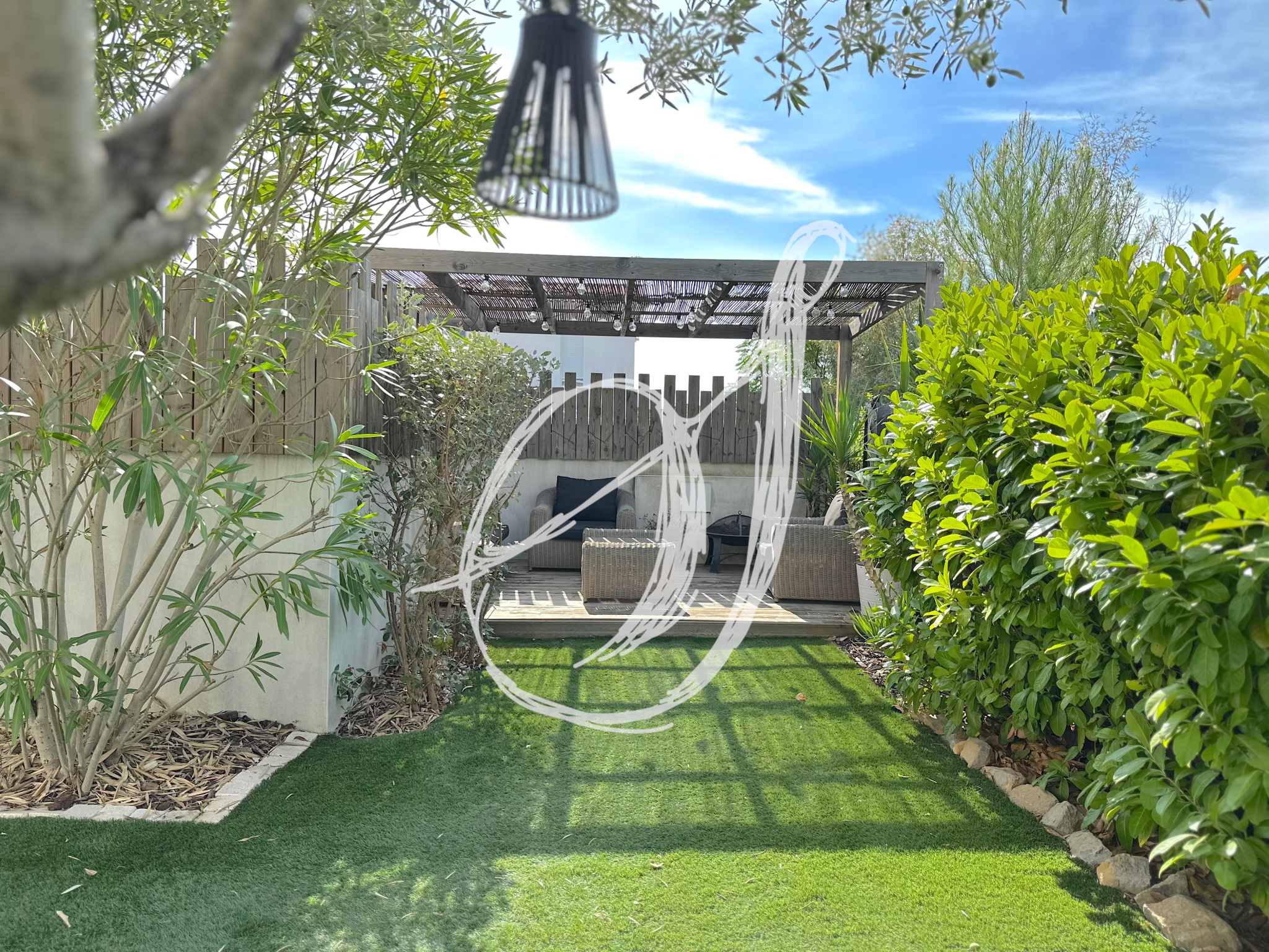 Dans un quartier résidentiel en impasse, cette villa contemporaine de 2019 présente des prestations haut de gamme. Baigné de lumière, son Séjour / Cuisine de près de 40 m2 s'ouvre par une large baie sur terrasse & jardin exposés plein Sud. La cuisine, entièrement équipée, est en léger retrait du séjour. Le jardin est entièrement paysagé & bénéficie de deux terrasses : une première dans le prolongement du séjour avec store banne électrique, la deuxième très intimiste dispose d'une pergola. À l'étage, trois chambres, dont une avec dressing, se partagent une salle d'eau / WC. Une construction traditionnelle en briques alvéolaires sur vide sanitaire, équipée de climatisation réversible gainée sur l'ensemble de la villa, cumulus thermodynamique, panneaux photovoltaïques en auto consommation, isolation périphérique en laine de bois, garage & emplacement de stationnement extérieur privatif.