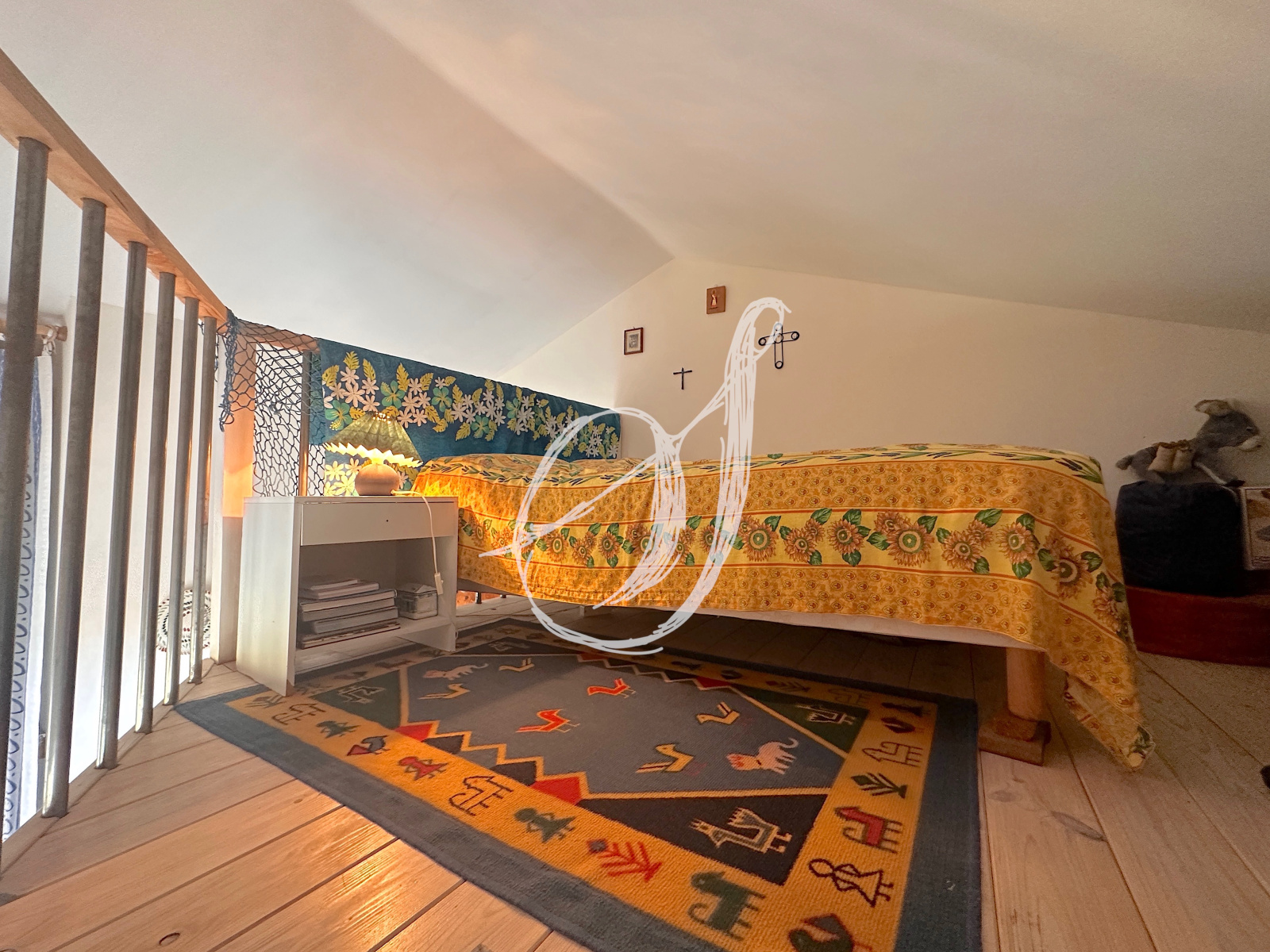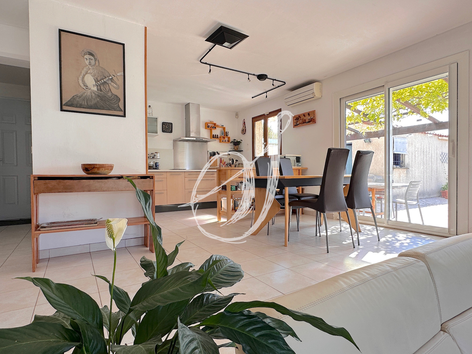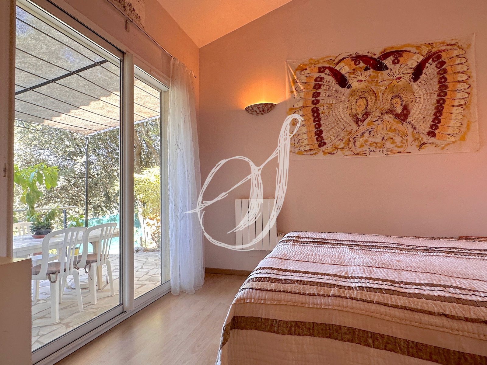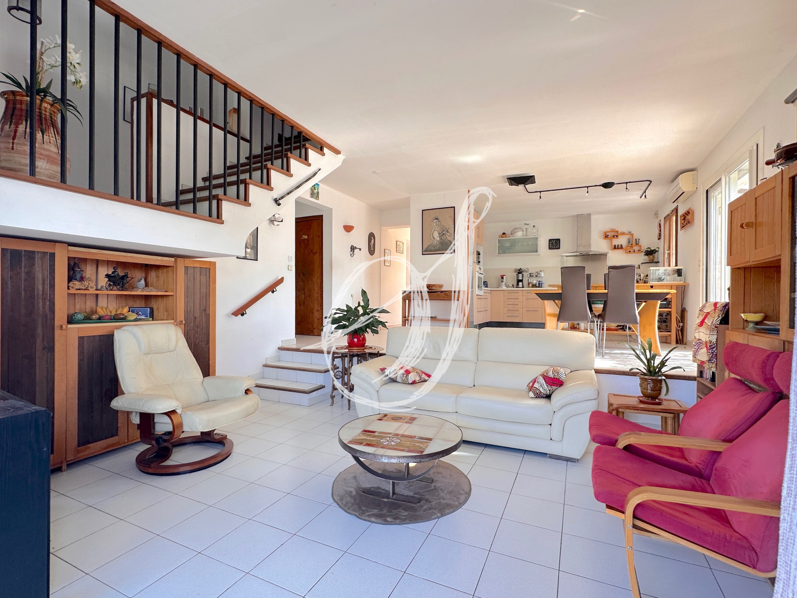 Une architecture marquée pour cette villa de 1988 sur les hauteurs du village, en impasse & en bordure d'une zone naturelle protégée. L'espace de vie traversant s'ouvre sur trois terrasses, offrant chacune une vue dominante & dégagée. La cuisine semi-ouverte donne sur l'espace dinatoire. En léger contre-bas, le salon dispose d'une cheminée. Au rez-de-chaussée, on retrouve également une chambre parentale donnant directement sur terrasse, sa salle d'eau privative & des WC avec coin buanderie. À l'étage un large palier pouvant faire office de bureau dessert 3 chambres & une salle d'eau avec WC. Deux des chambres disposent de couchages en mezzanine. La villa dispose également d'un garage & d'une dépendance au niveau -1, donnant directement sur le jardin. Cette dernière peut faire office d'atelier, de chambre d'appoint, de bureau ... Un emplacement rare pour ce bien parfaitement entretenu, nécessitant quelques rafraichissements.
