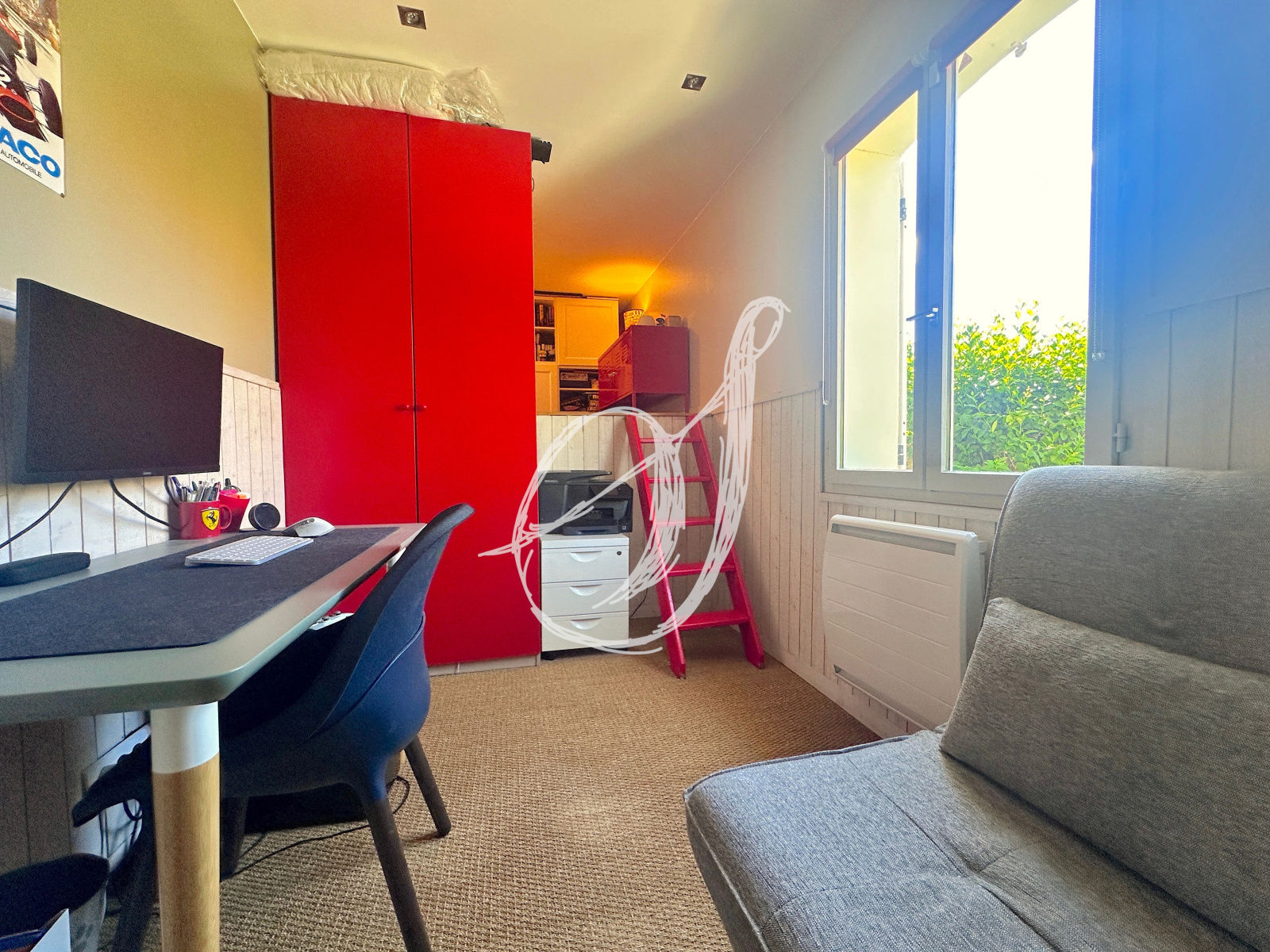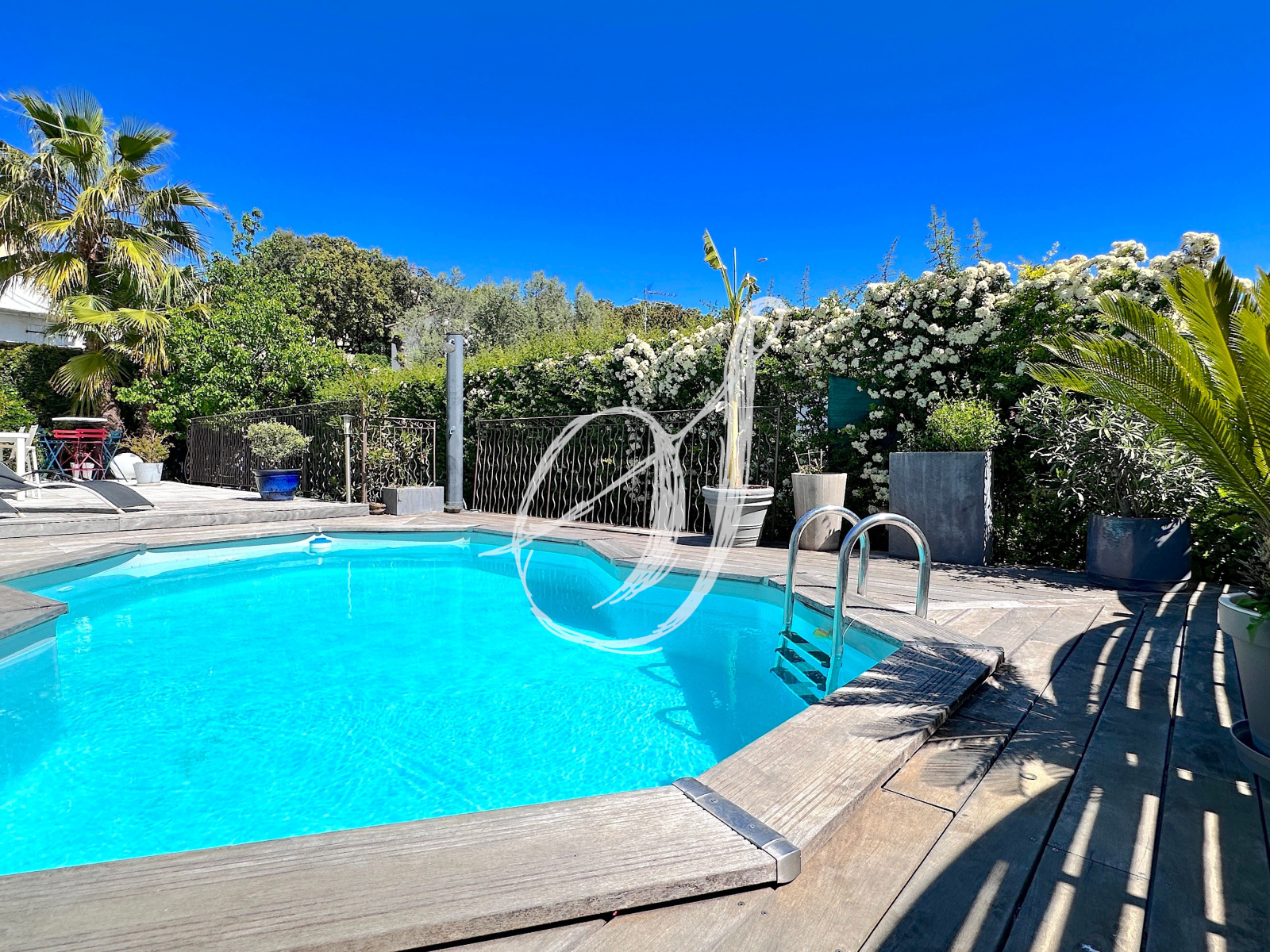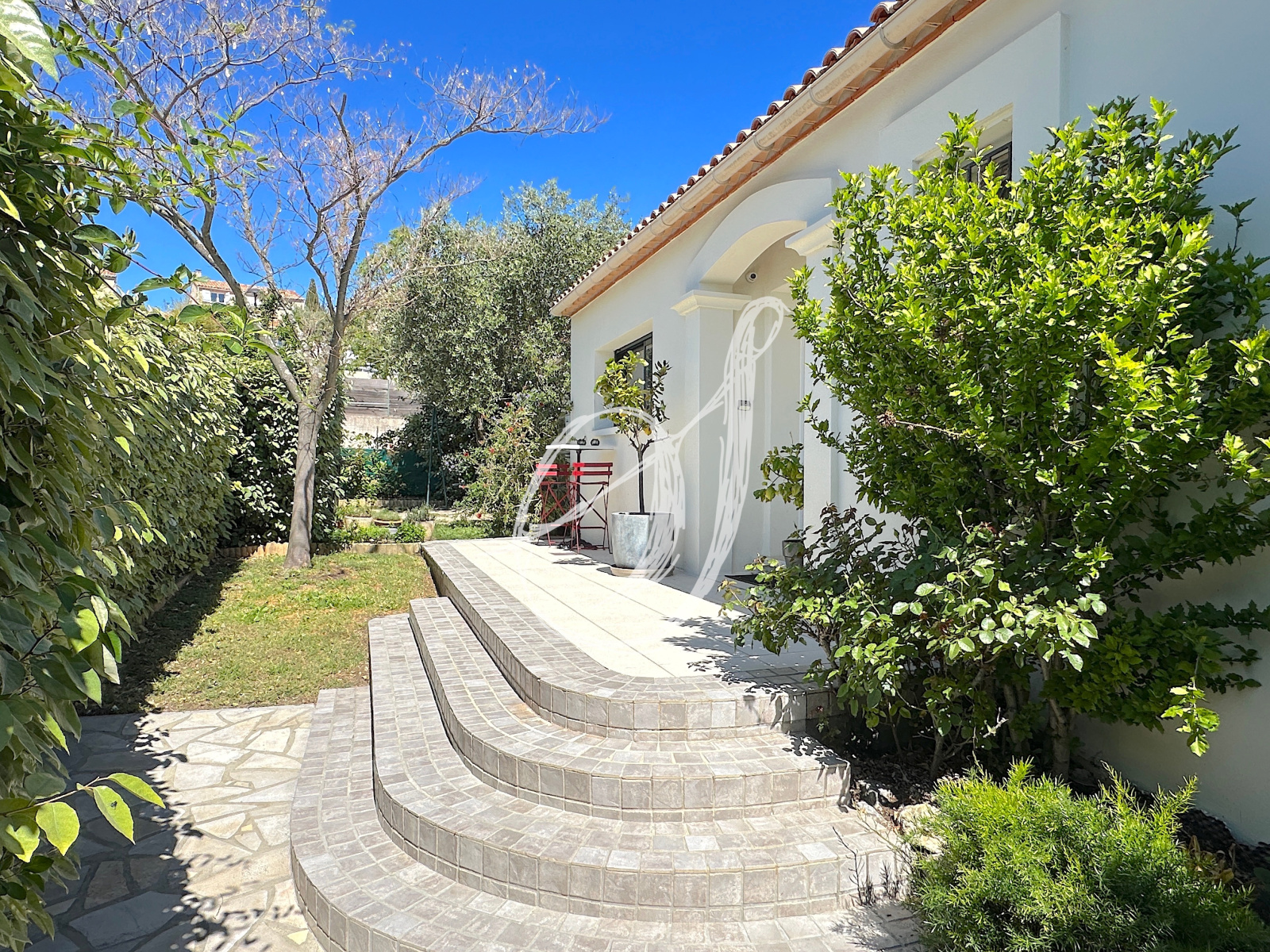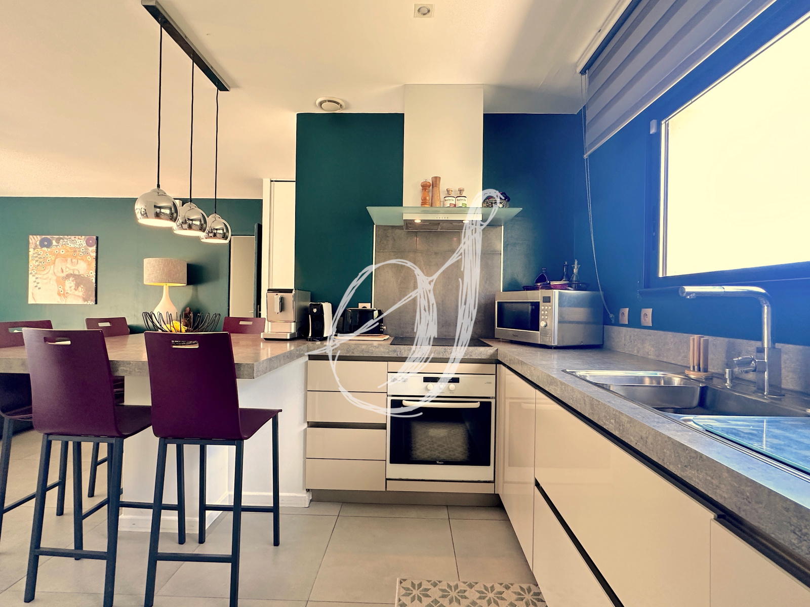 Dans un quartier résidentiel calme, en impasse, cette villa de plain-pied bénéficie d'un espace de vie de 57 m2 ouvert par une baie à galandage de 3 mètres sur terrasse & jardin. Dans la continuité du salon, la salle-à-manger entièrement vitrée dans un esprit atelier est bourrée de charme. Le jardin, sans vis-à-vis dispose d'une piscine équipée de nage à contre-courant. La partie nuit offre une suite parentale comprenant un dressing & un point d'eau privatif & deux autres chambres se partageant une salle d'eau. La villa dispose d'un garage & de deux emplacements de stationnement extérieurs. Un bien en parfait état d'entretien équipé de climatisation réversible & d'un poêle à bois.