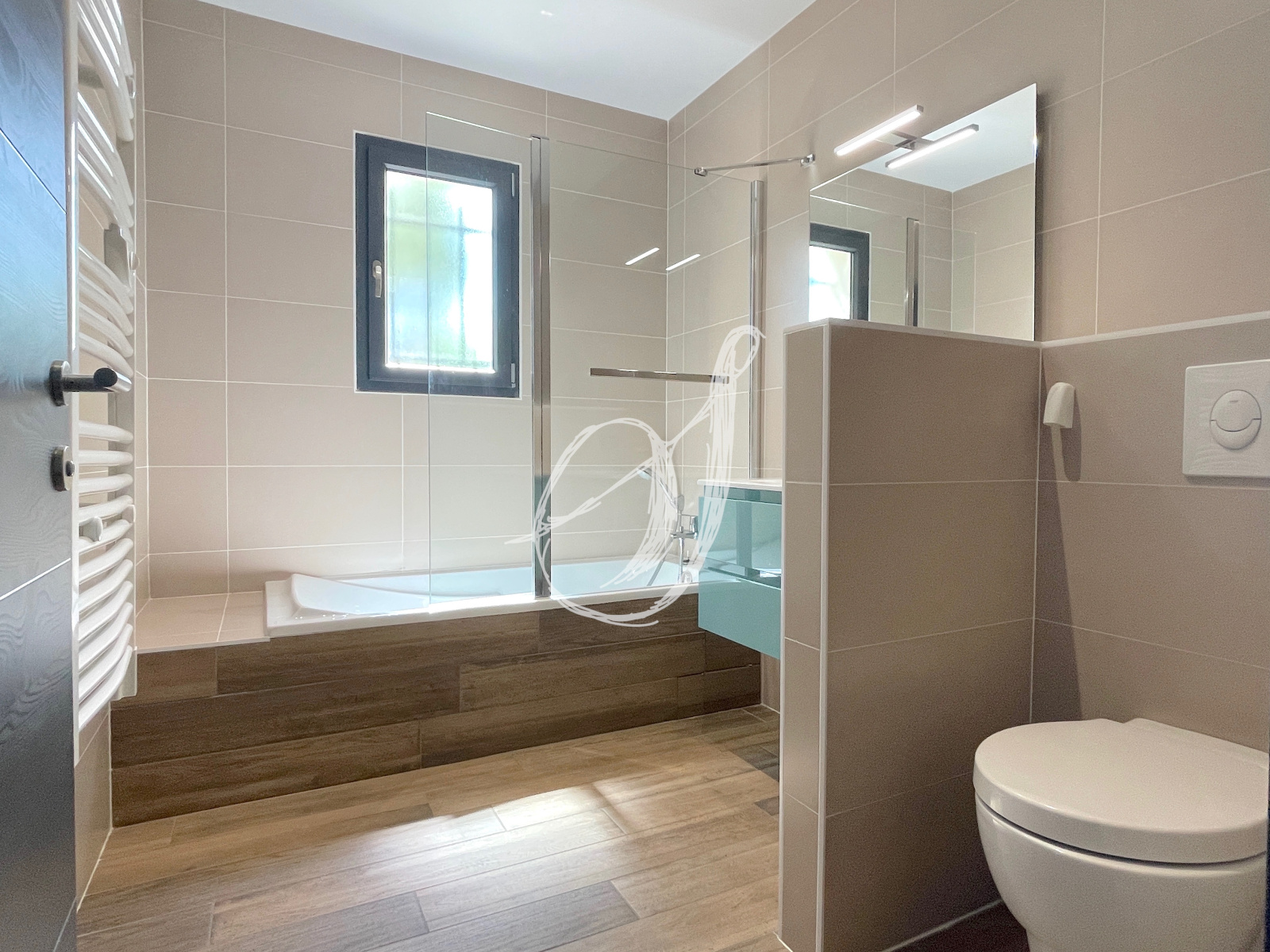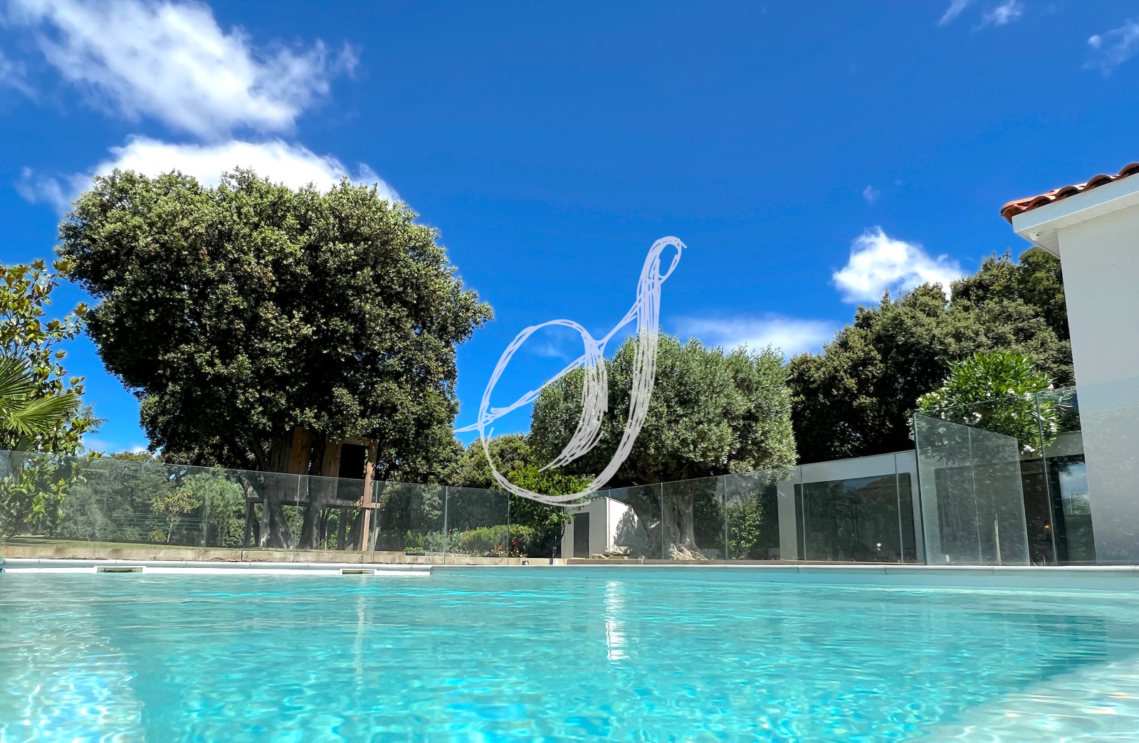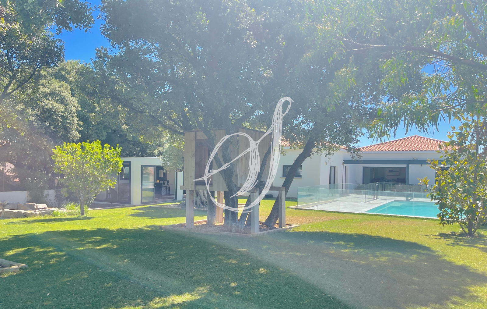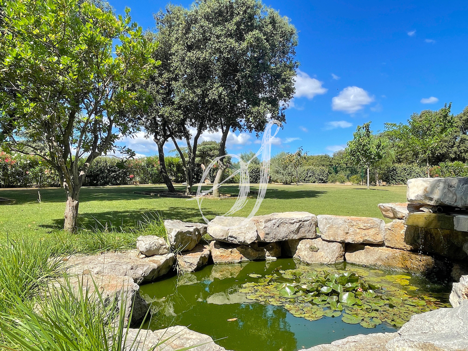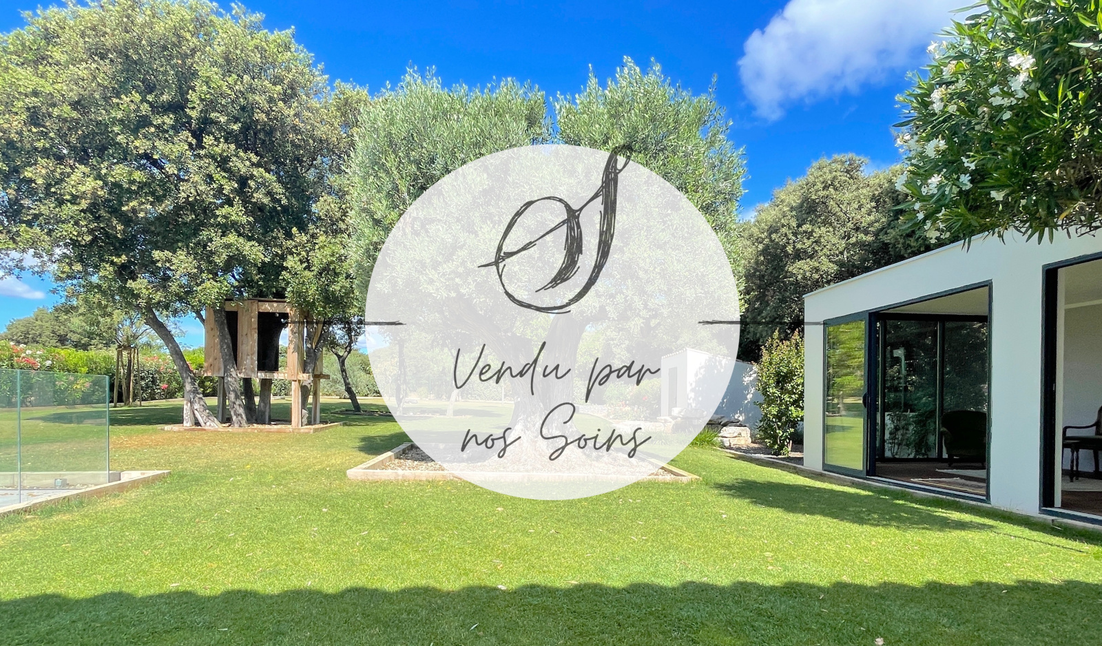 Des prestations rares pour cette propriété de standing, sur les hauteurs du village au calme. En bordure d'une zone naturelle protégée & non constructible, cette villa de 2017 labéllisée BBC & RT 2012 est entièrement de plain-pied. Son espace de vie de près de 60 m2 s'ouvre par une large baie à galandage sur terrasse, piscine & jardin entièrement paysagé. Bourré de charme, ce jardin mêle diverses essences nobles : oliviers centenaires, chênes verts, palmiers, jasmin du Japon... Le tout sans aucun entretien : arrosage automatique sur forage & robot tondeuse. Ce bien offre 4 chambres, dont une suite avec dressing & salle d'eau privative, une salle-de-bains. La cuisine haut de gamme de marque allemande dispose d'un cellier communicant avec le double garage. Ouverte sur le jardin, une dépendance aujourd'hui aménagée en salon d'été peut recevoir un espace jacuzzi, une chambre invités, un atelier d'artiste... Un bien impeccable offrant encore diverses possibilités d'évolution en fonction des projets.