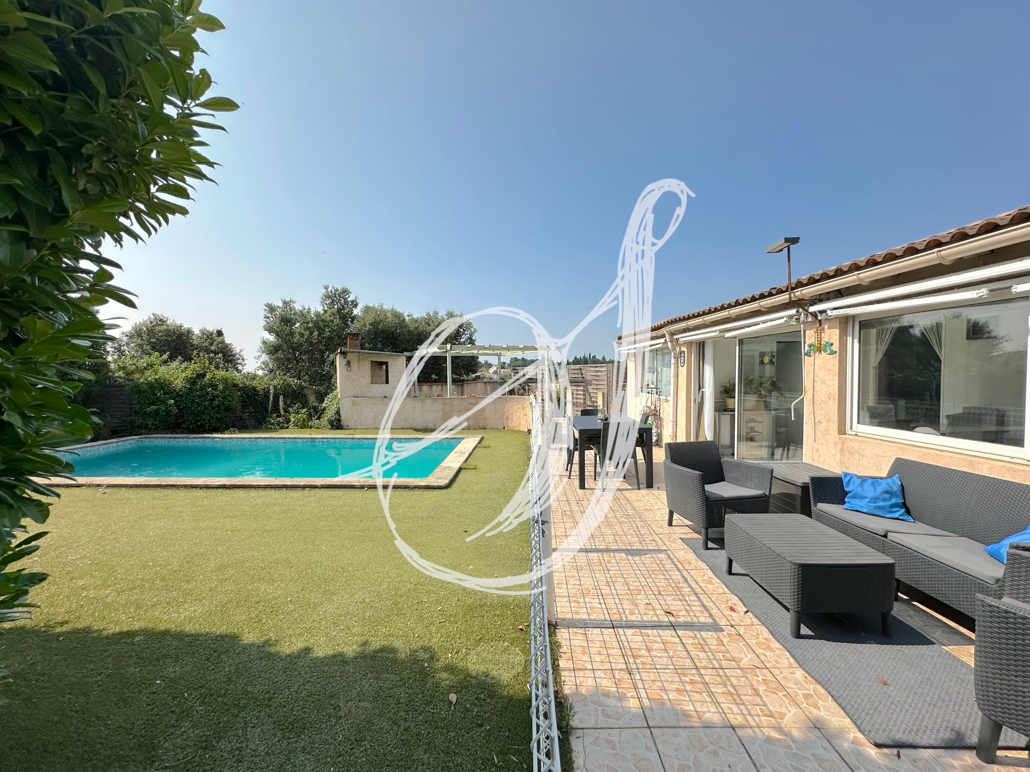 Dans un quartier résidentiel calme, sur les hauteurs, cette villa de plain pied est individuelle, non mitoyenne. Elle dispose d'une parcelle de 603 m2, exposée Sud-Est. Son espace de vie de près de 40 m2 est traversant & s'ouvre sur véranda & terrasse. Dans la continuité, on retrouve l'espace piscine & barbecue. Côté nuit, 3 chambres se partagent une salle d'eau. Actuellement séparé, un studio de 20,45 m2 est idéal pour créer une chambre parentale avec salle d'eau (porte existante à rouvrir), recevoir de manière indépendante ou créer un bureau pour une profession libérale. Un bien en bon état d'entretien équipé d'une pompe à chaleur air/eau (2023), de climatisation réversible & d'un cumulus thermodynamique. Sur vide sanitaire intégral, ce bien nécessite quelques rafraichissements.