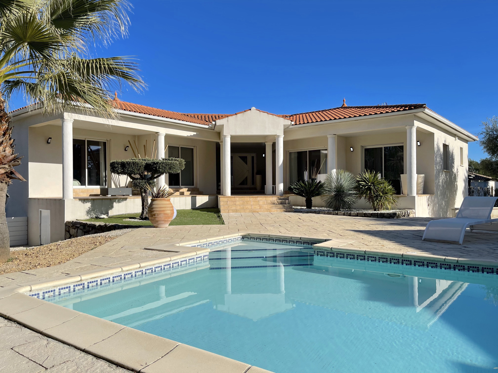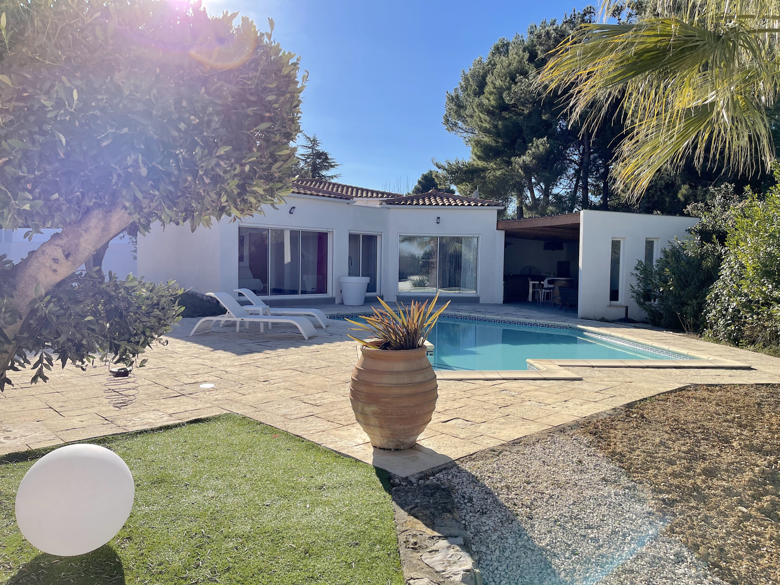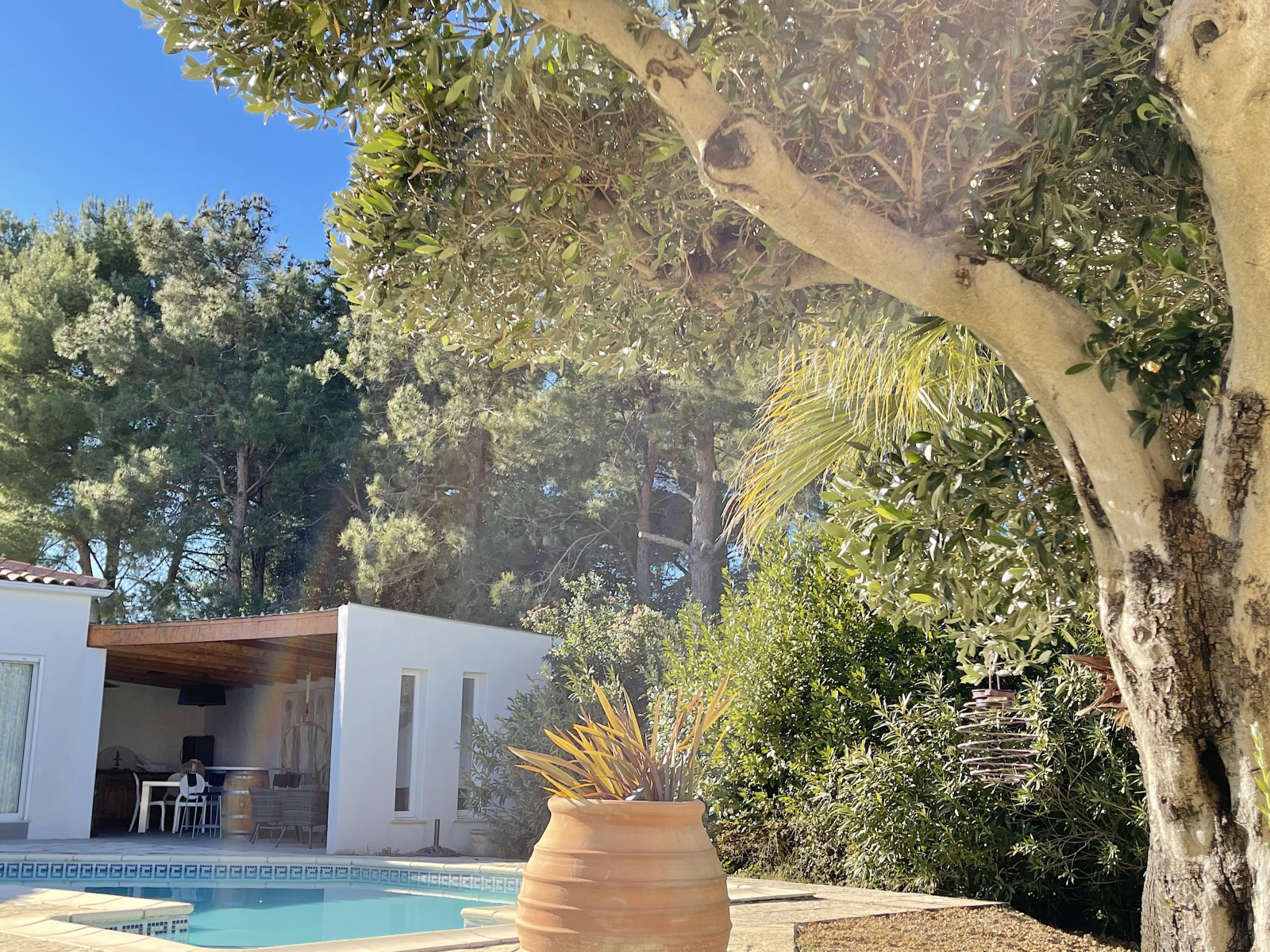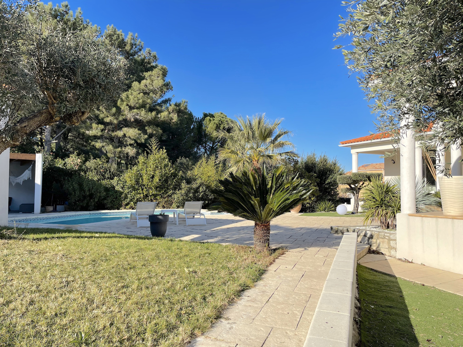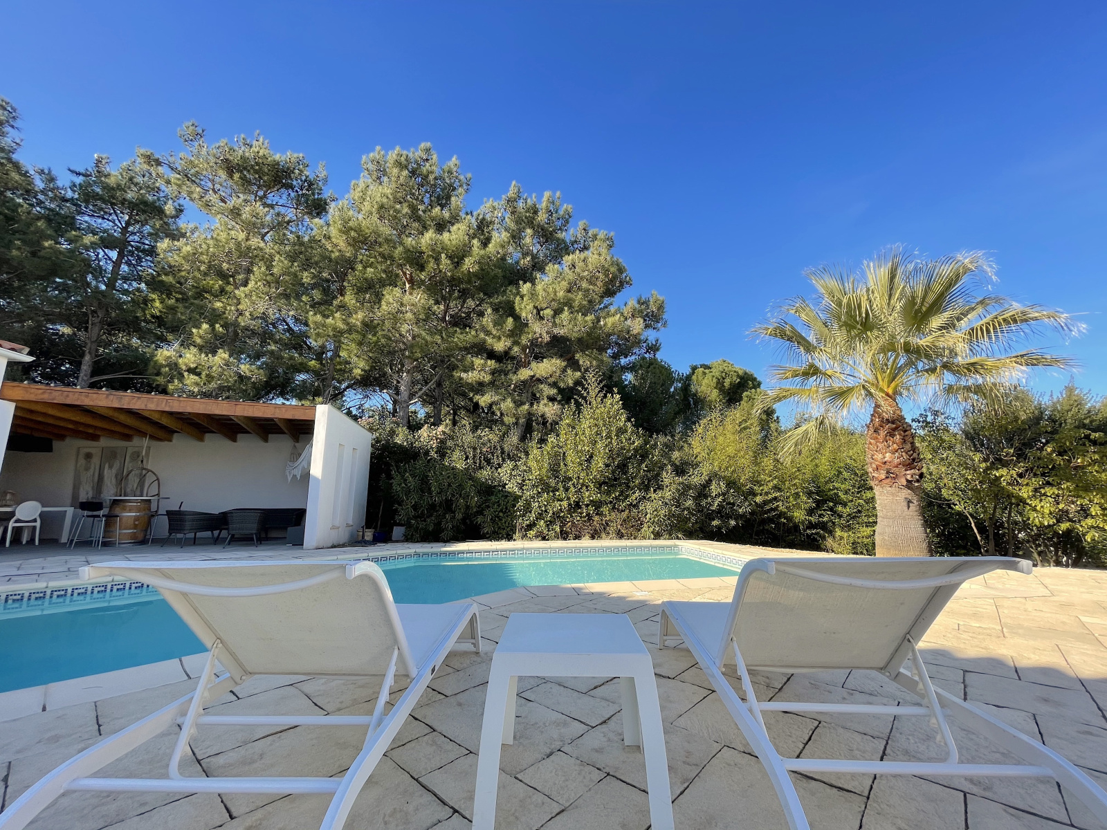 Dans le quartier recherché du Terral, dans un environnement boisé protégé, sur une parcelle de 1 459 m2, cette propriété est orientée plein sud autour de l'espace piscine. De plain-pied, la partie principale offre un espace de vie ouvert de 70 m2 comprenant une cuisine equipée avec arrière cuisine. L'espace nuit offre deux suites avec leur pièce d'eau privative & une troisième chambre. Complètement indépendant mais communicant avec la partie principale, un appartement de type 2 est idéal pour recevoir, pour loger un membre de la famille ou générer un revenu locatif. Enfin, dans un esprit Farniente, le pool house dispose lui aussi d'une suite & d'une cuisine dinatoire indépendante & bénéficie d'une grande terrasse couverte avec cuisine d'été. Un Must pour profiter des longues soirées d'été. Des prestations de qualité pour cette adresse exclusive.