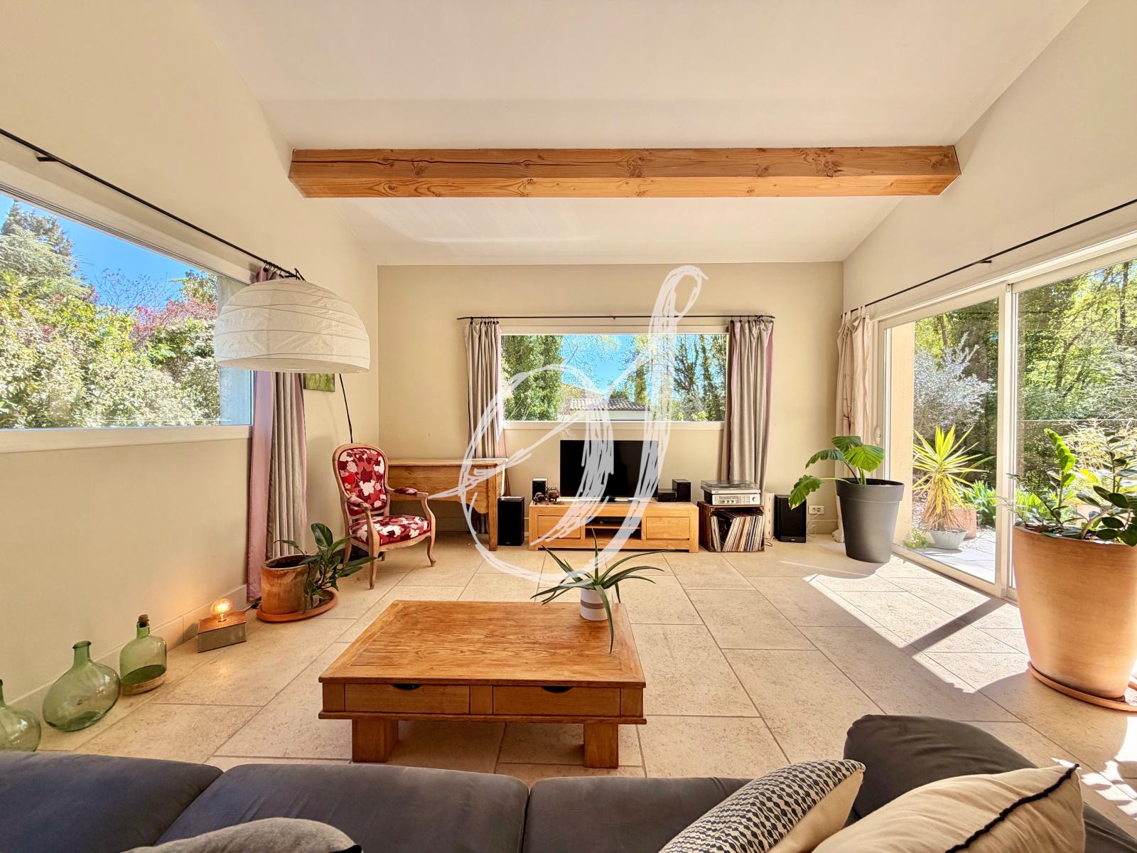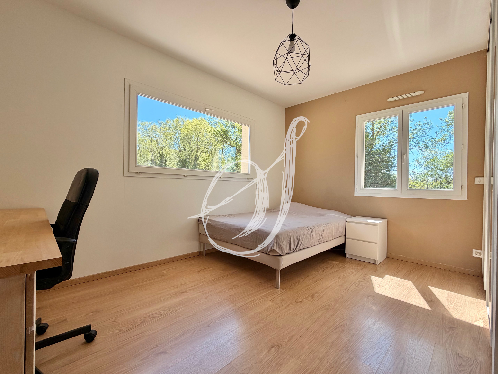 Dans un quartier résidentiel calme, sur une parcellle de 971 m2, cette villa de 2008 offre près de 156 m2 habitable. Baignés de lumière, séjour & cuisine s'ouvrent par de larges baies sur terrasse, en léger surplomb du jardin, exposés Sud /Sud-Est. Arboré & sans vis-à-vis, le jardin bucolique est en bordure d'un espace boisé classé, totalement inconstructible. Au rez-de-chaussée, on retrouve également une première chambre (pièce d'eau amménageable), & un garage communicant avec la maison par la buanderie. À l'étage, le palier dessert 3 chambres dont une suite avec dressing & salle d'eau (à finaliser). Les deux autres chambres se partagent une salle de bains. Un bien bourré de charme, équipé d'un système de chauffage central au sol sur pompe à chaleur air/eau réversible, de l'aspiration centralisée & d'une cave en sous-sol. Piscine traditionnelle à fond plat traitée par électrolyse, forage pour l'arrosage automatique de la parcelle.