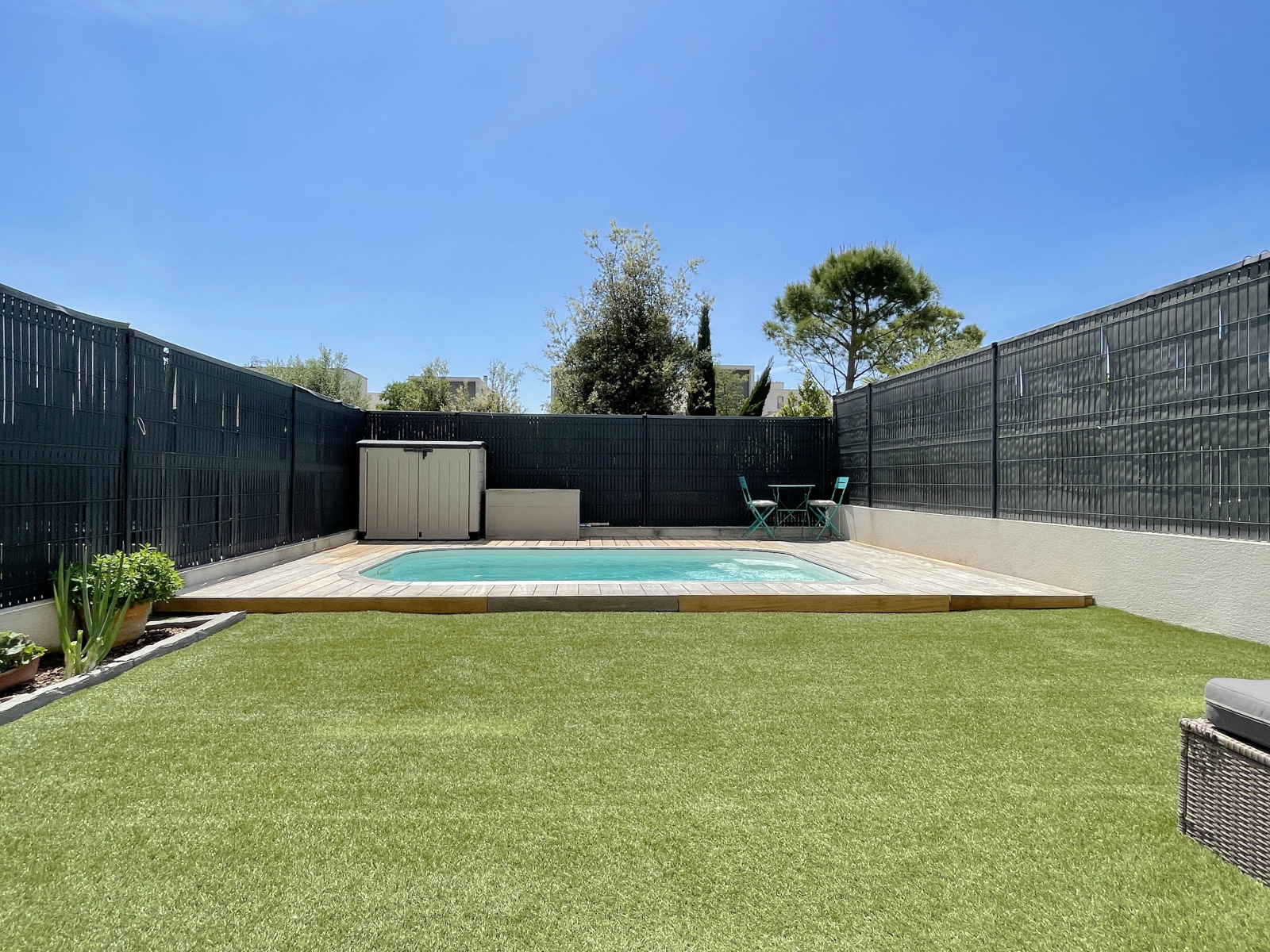 Quartier Courpouyran, cette villa contemporaine à toit plat de 2015 offre un séjour traversant de près de 36 m2 donnant directement sur jardin avec piscine exposé Sud-Ouest (55,23 m2) & un patio à l'arrière (12,23 m2). La cuisine ouverte est entièrement équipée. Au rez-de-chaussée, on retrouve également une chambre avec placards, des WC avec espace buanderie. À l'étage, deux belles chambres avec placards & une salle-de-bains avec WC. Un bien en parfait état bien équipé : climatisation réversible, alarme, adoucisseur d'eau.