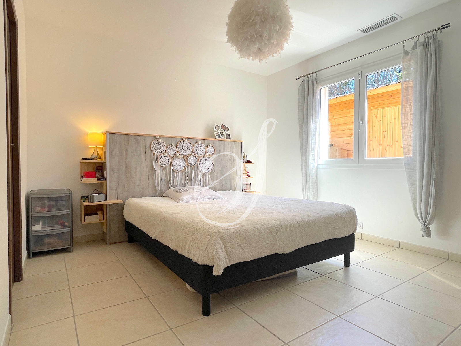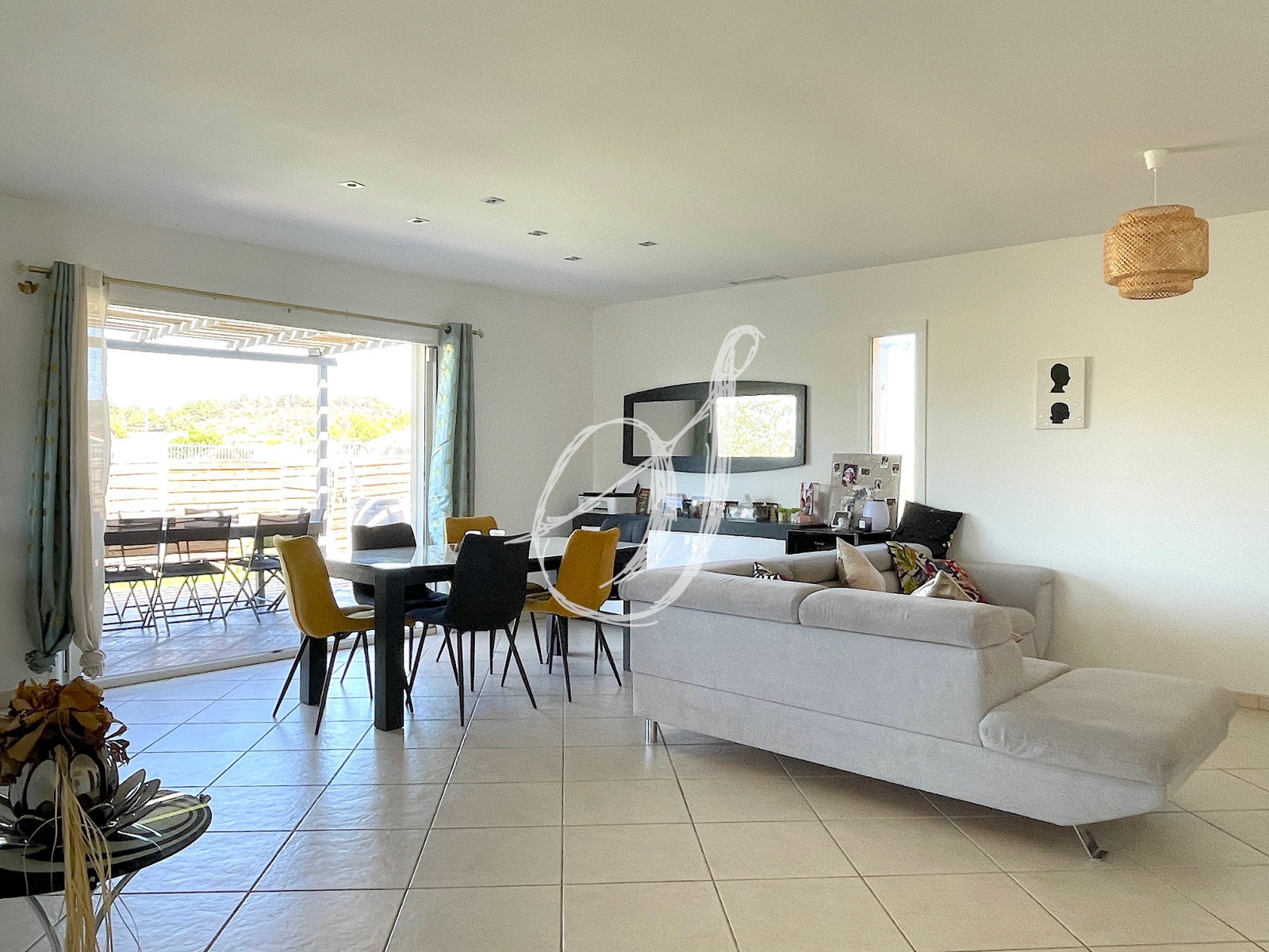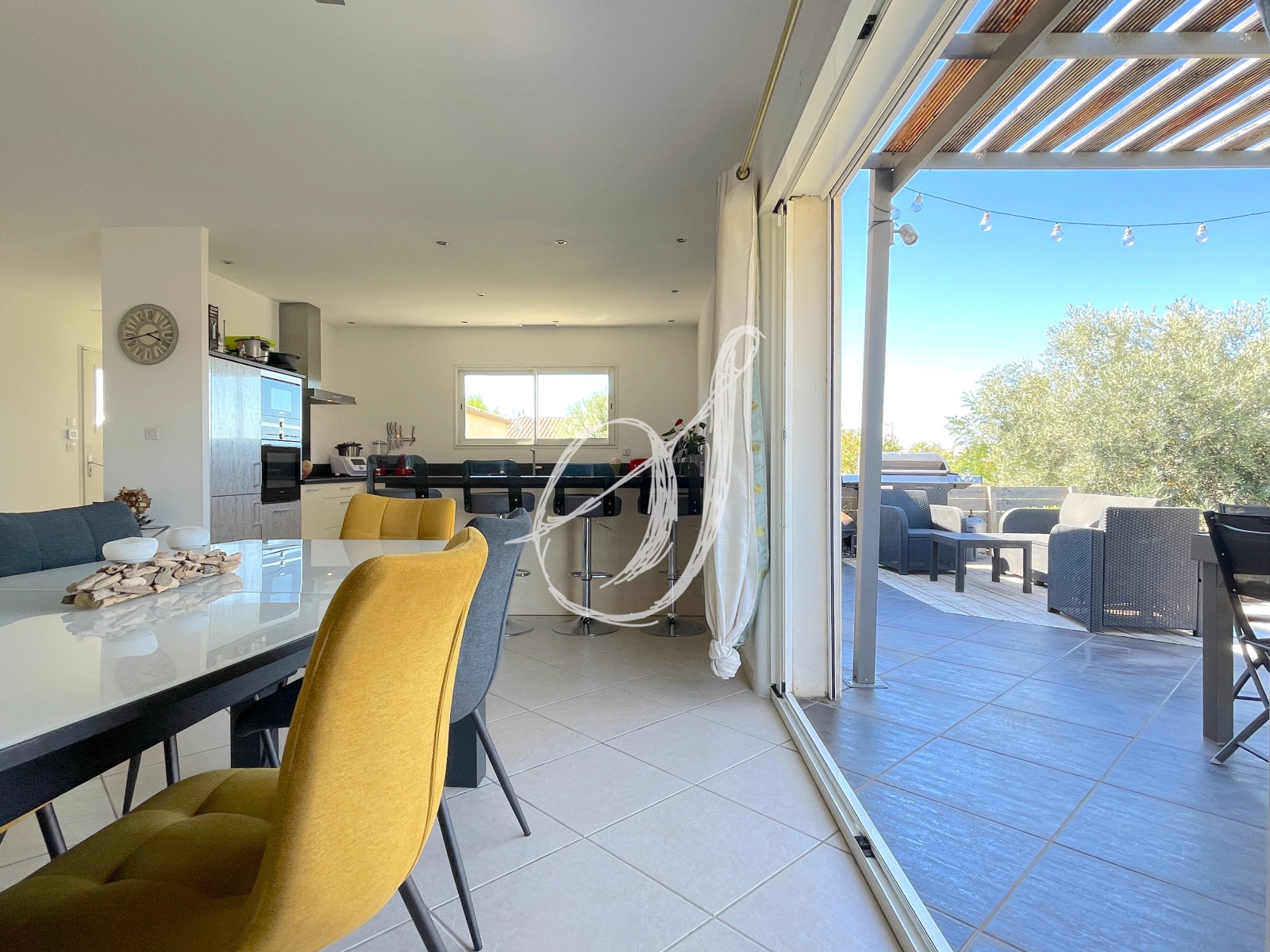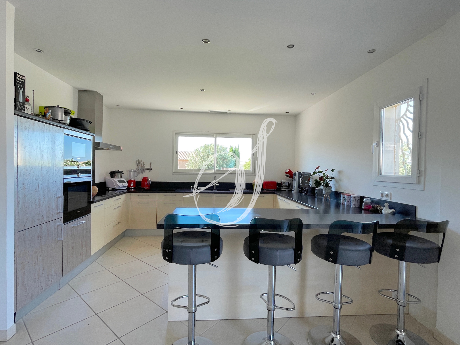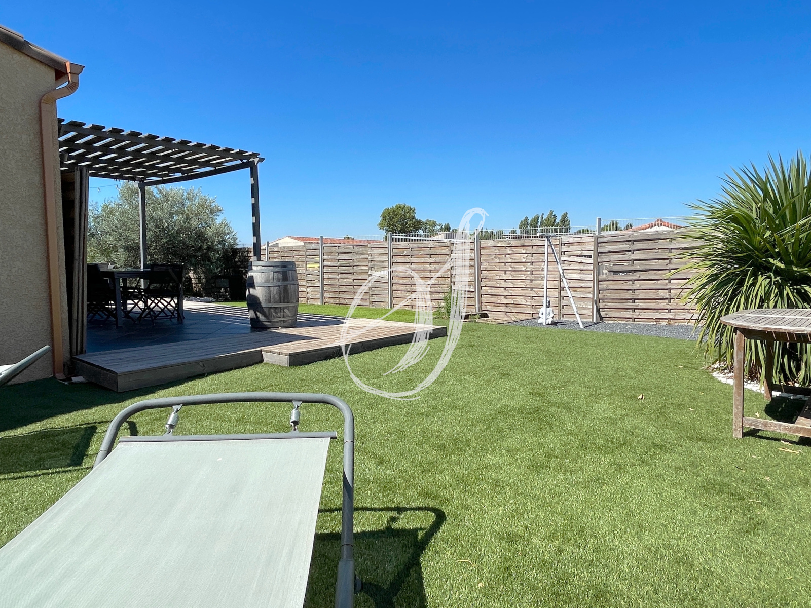 Dans un quartier résidentiel calme, cette villa de plain-pied de 2007 dispose d'un espace de vie de 46 m2 avec cuisine ouverte entièrement équipée. Il s'ouvre par une baie à galandage sur terrasse & jardin sans vis-à-vis. La partie principale offre quatre chambres avec placards, une salle d'eau & des WC séparés (possibilité chambre parentale avec salle d'eau privative). Communicante avec la villa, la dépendance aménagée offre une buanderie & une pièce d'environ 20 m2 pouvant servir de bureau, de local professionnel ou de studio indépendant. Le jardin peut accueillir une piscine, un puits est exploitable sur la parcelle. Surface utile totale dépendance incluse : 157 m2.