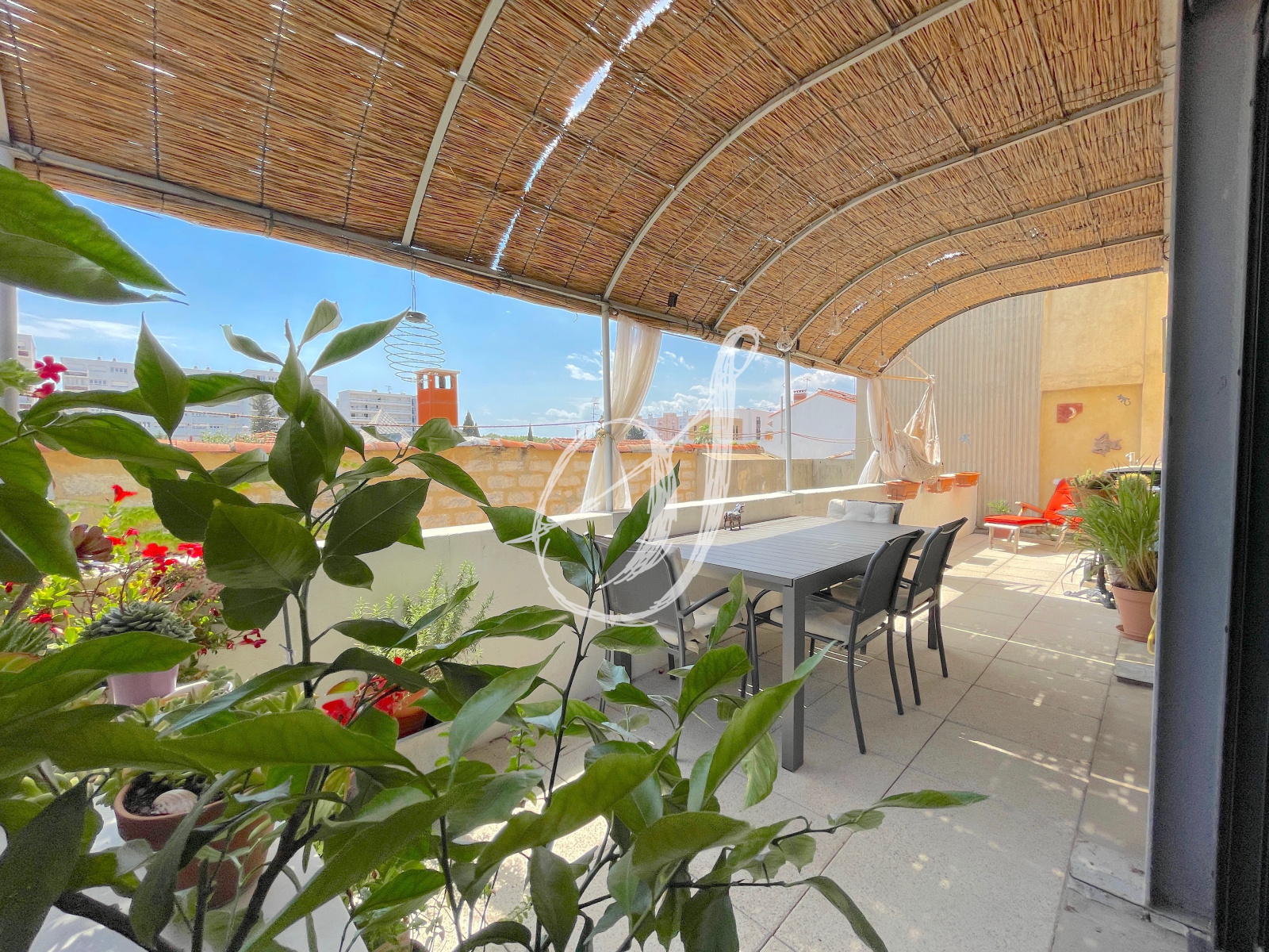 À quelques pas du centre-ville de Montpellier et de la gare Saint-Roch, dans un ancien cinéma réabilité en résidence privative, au deuxième & dernier étage, cet appartement de charme est traversant. L'espace de vie de près de 35 m2 offre une hauteur sous plafonds de plus de 3 mètres & s'ouvre sur une terrasse exposée Sud-Ouest de 20 m2. Très lumineuse cette pièce est valorisée par sa structure métallique apparente. Côté nuit, les deux chambres avec placards se partagent une terrasse exposée Nord-Est de 22,60 m2 & une salle de bains. L'appartement est vendu avec deux places de parking en sous-sol (boxable) & une cave privative. Petite copropriété avec 90% de propriétaire résident de 9 lots principaux, l'ensemble des commodités à proximité à pieds : écoles, commerces, tram et bus...
