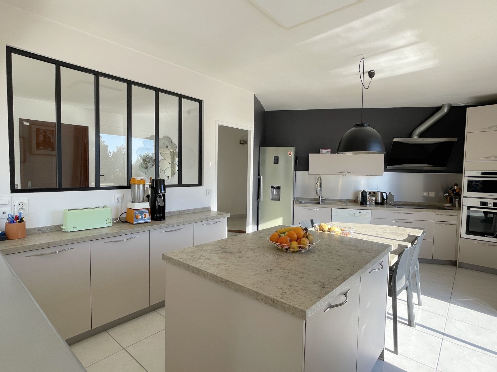 Dans un quartier résidentiel calme, sur les hauteurs, cette villa bénéficie d'un emplacement de choix dans un environnement naturel préservé, à deux pas de l'ensemble des commodités à pieds. Sur une parcelle paysagée de 2 000 m2, différents espaces d'agréments s'articulent autour de la piscine. Terrasses donnant sur une vue dégagée à 180°, terrasses couvertes, boulodrome à l'ombre des arbres... En grande partie de plain-pied, la maison principale offre un séjour d'une surface de plus de 61 m2 ouvert par trois baies vitrées sur vue dégagée. Baignée de lumière, cette pièce bénéficie d'une belle hauteur sous plafonds grâce à sa mezzanine, idéale pour espace bureau. Sur ce niveau, on retrouve également 3 chambres dont une suite indépendante, une salle-de-bains & une buanderie. Au niveau inférieur, les dépendances permettent d'aménager un espace cinéma, salle de jeux, appartement pour recevoir... Nombreuses dépendances de stockage, atelier, garage double. Bénéficiant d'un accès indépendant, d'une place de stationnement individuelle & d'un bel extérieur, un apparrement de type 2 est actuellement loué. Une adresse exclusive dans une impasse privative.