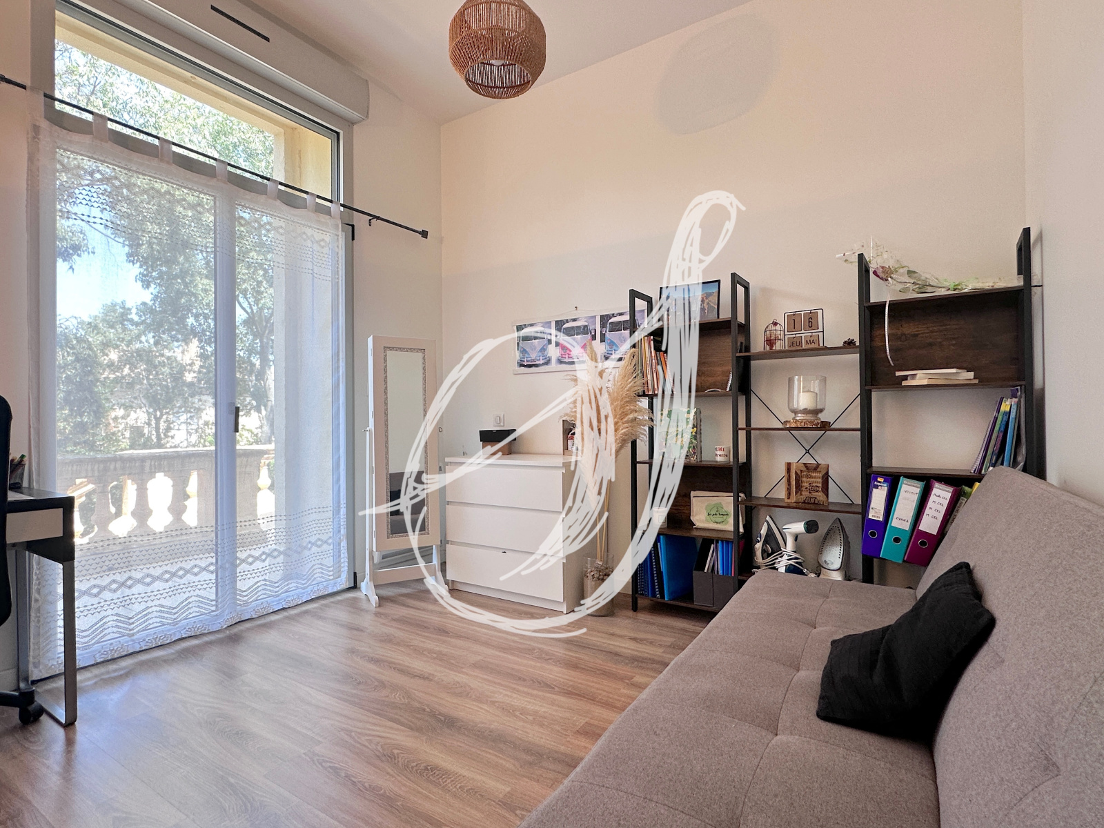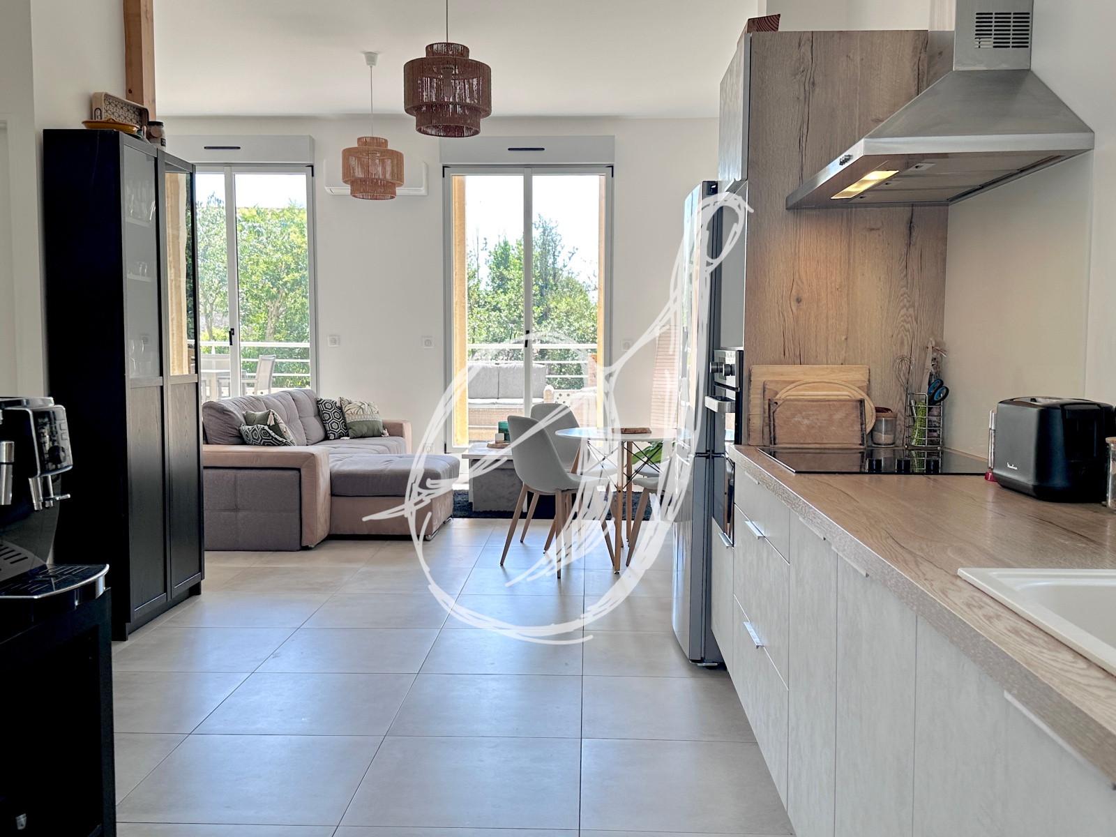 Au coeur du village, au sein d'une maison de Maitre du XIX ème siècle avec parc arboré, cet appartement de charme traversant offre de beaux volumes. Au premier étage, on y accède par une première terrasse privative de près de 15 m2. Son séjour s'ouvre sur la terrasse principale de 25 m2 exposée plein Sud, donnant en surplomb du parc de la copropriété. Baigné de lumière, il offre un espace de vie de près de 38 m2. Les deux chambres se partagent une salle d'eau avec coin buanderie. Climatisation réversible, deux places de stationnement privatif. Copropriété de 11 lots d'habitation sécurisée.